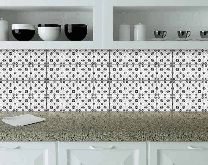 The possibilities are endless with these 5" x 5" Black and White Lil Daisy Peel and Stick Removable Tile stickers. These fabulous peel and stick tiles will add lots of color, sophisticated flair, and fun design to your kitchen backsplash, fireplace mantel, stair treads, half wall, bathroom or nook. These 5" square tile stickers in multiple bright fun colors and designs are an easy, no mess solution to complete a personalized and colorful room makeover. Easy to apply on any clean dry flat surface, and easy to remove. Multi use and multi-room appeal make this design option is perfect for renters, landlords, college students and homeowners alike. Peel and stick tile decals make it easy to turn your space into a home. Removable without damage to surfaces. One kit contains 24 stickers. Kit includes a single style tile design.