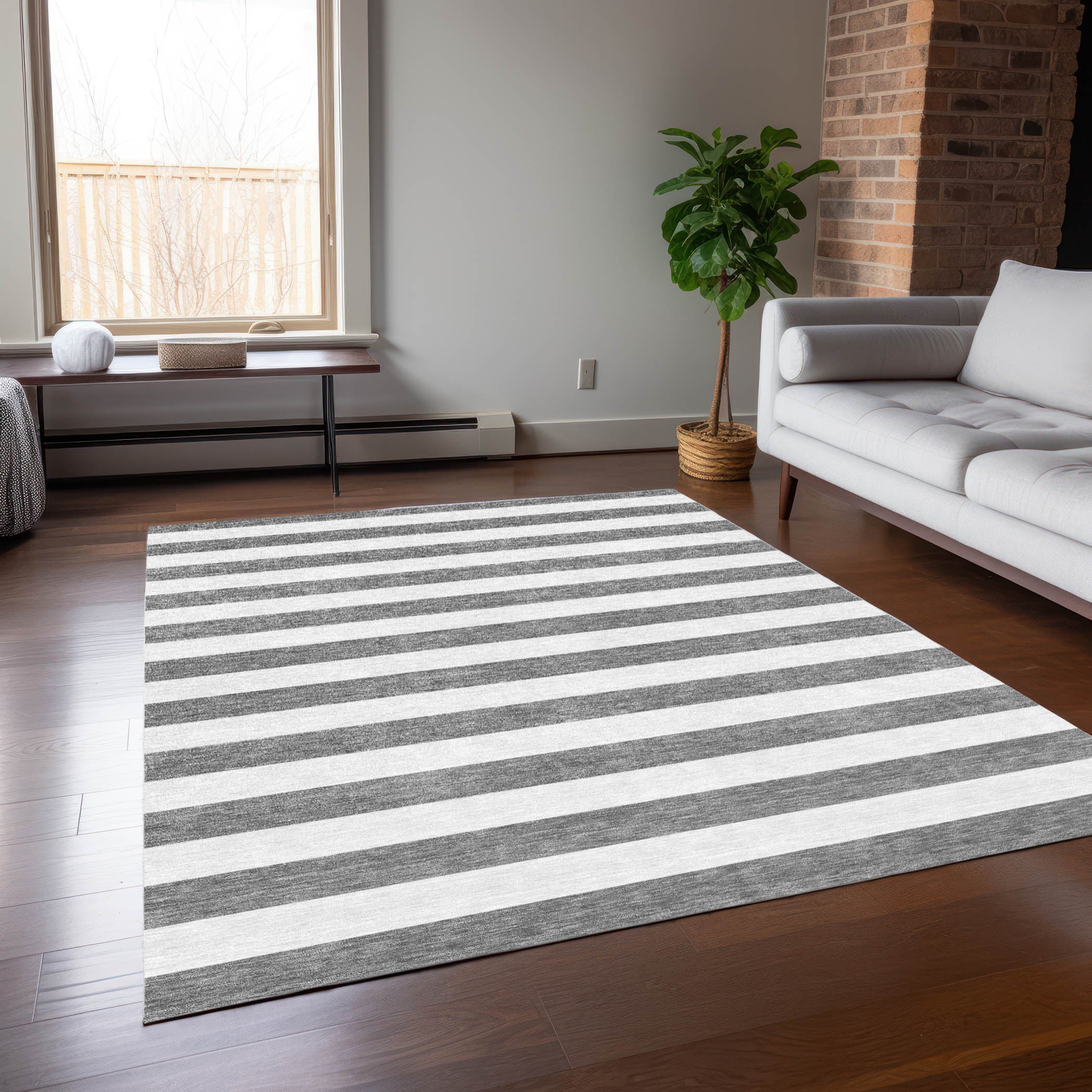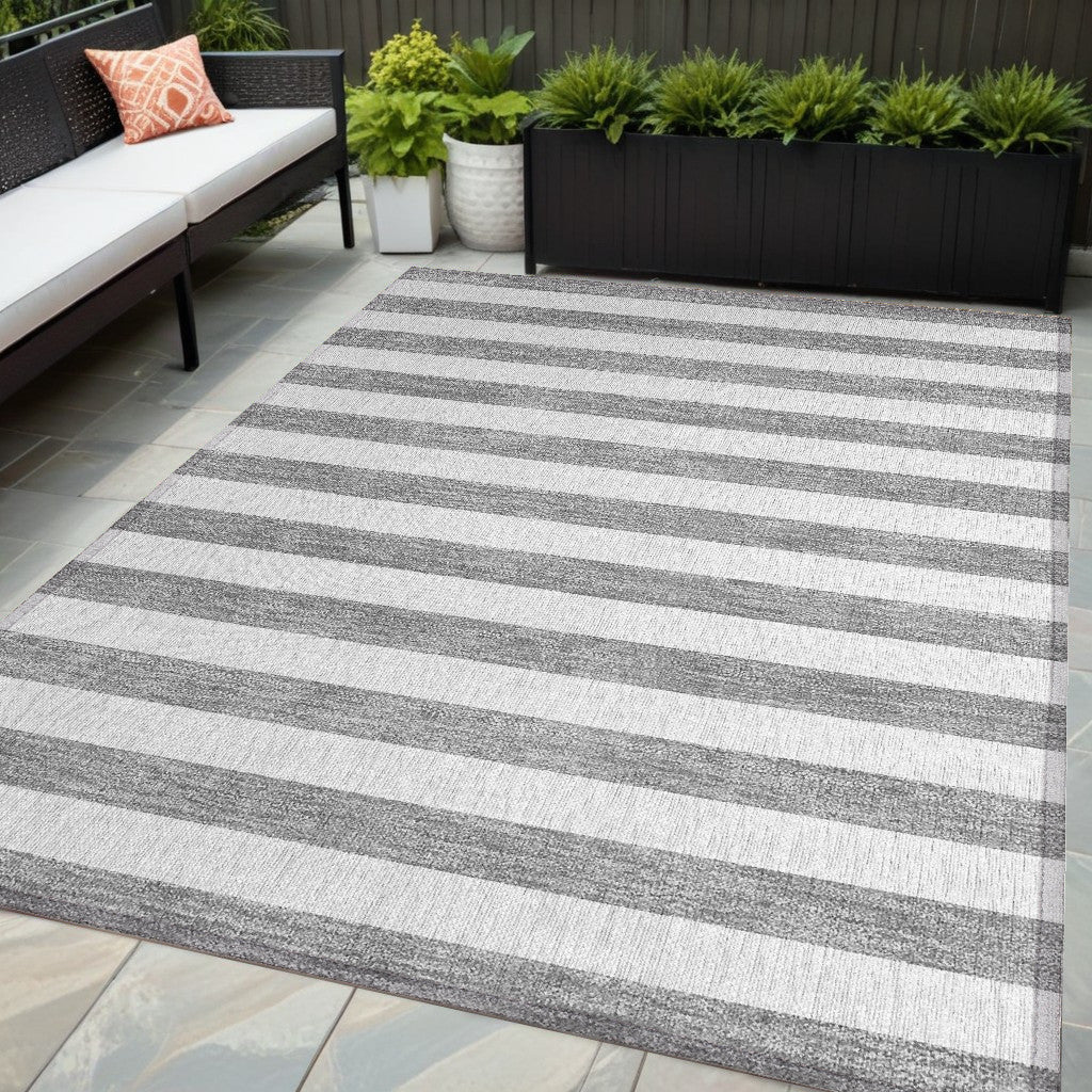 5' X 8' Gray and White Striped Washable Non Skid Indoor Outdoor Area Rug