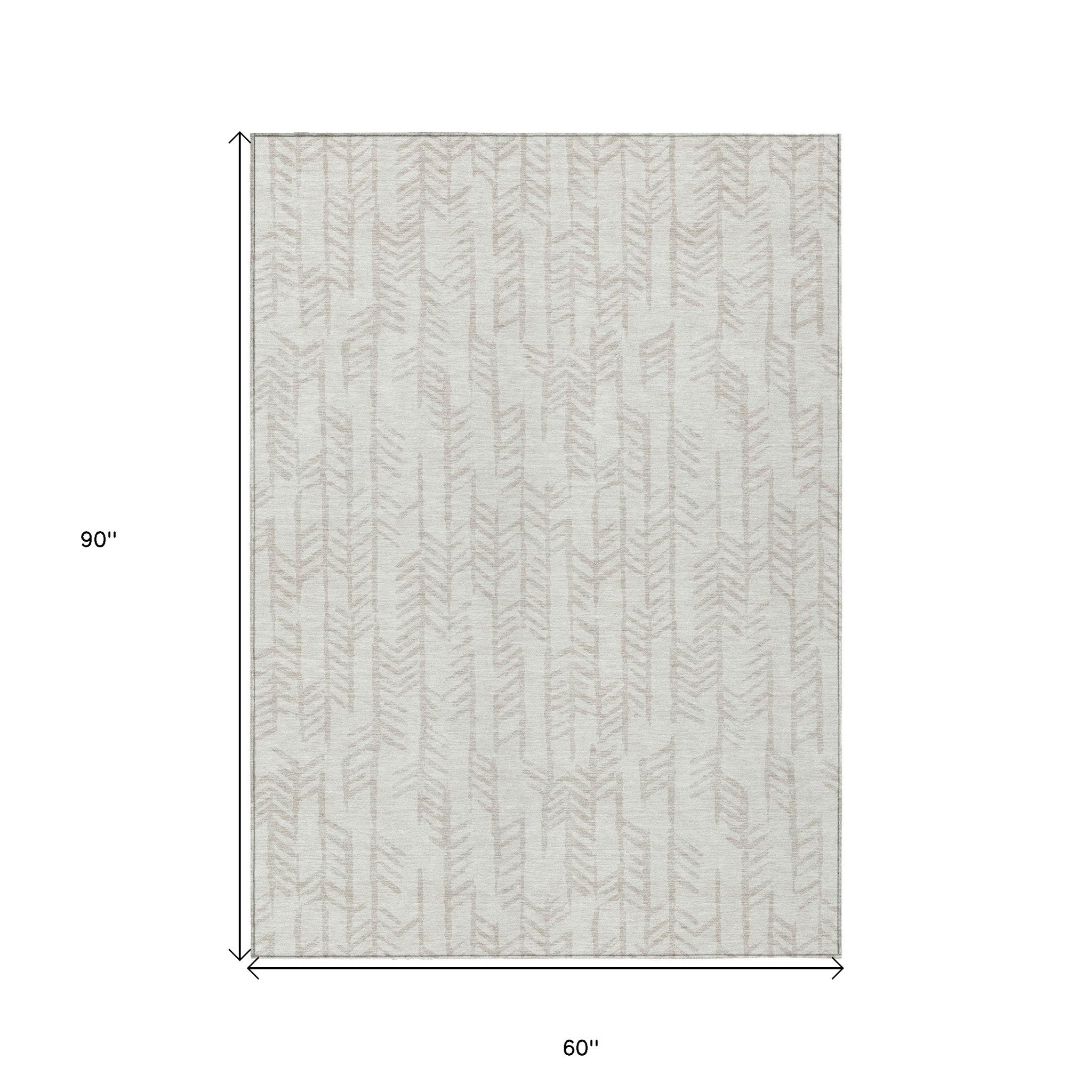 5' X 8' Ivory And Beige Tribal Washable Indoor Outdoor Area Rug