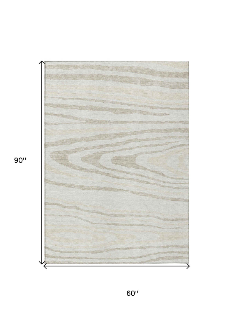 5' X 8' Ivory Beige And Taupe Faux Bois Washable Indoor Outdoor Area Rug
