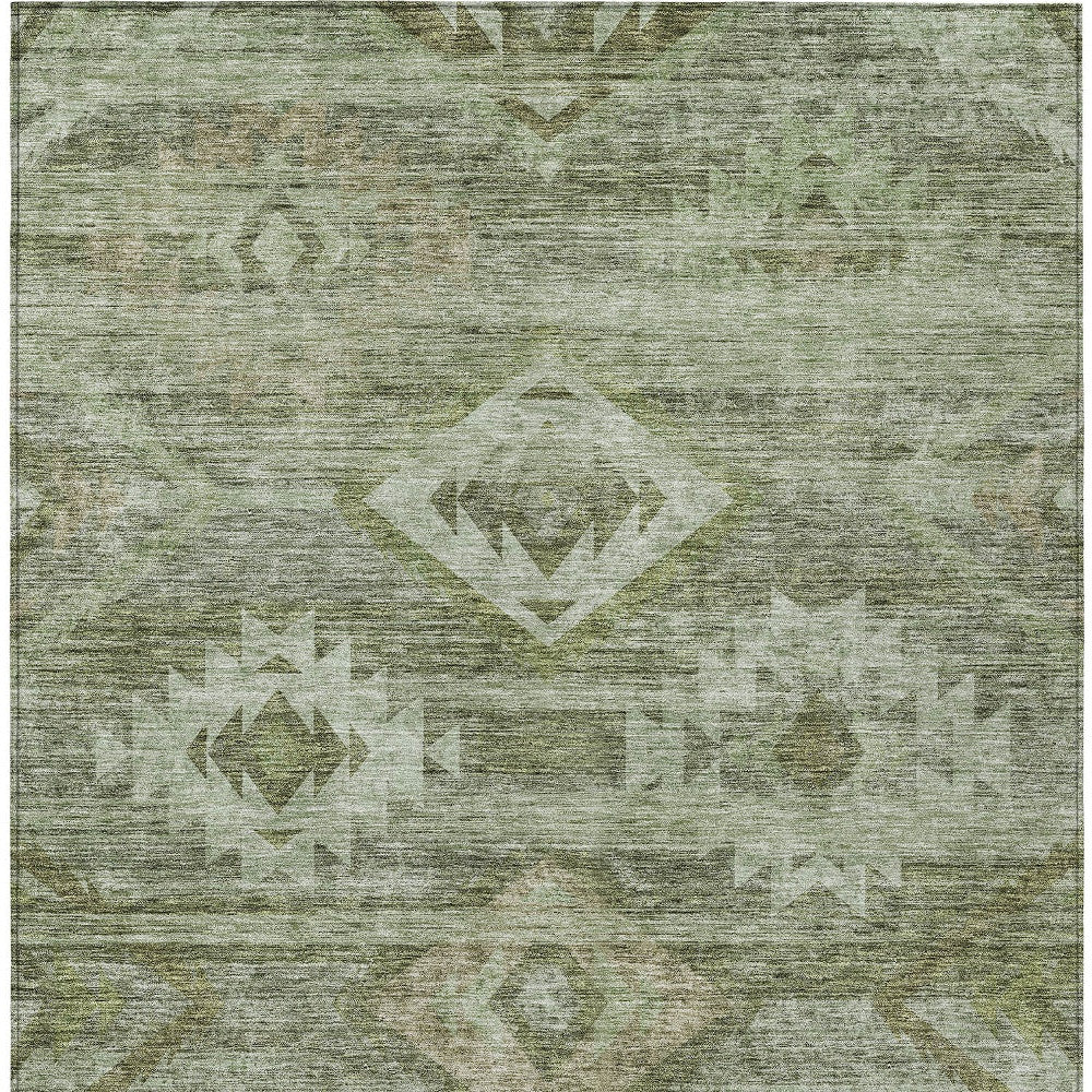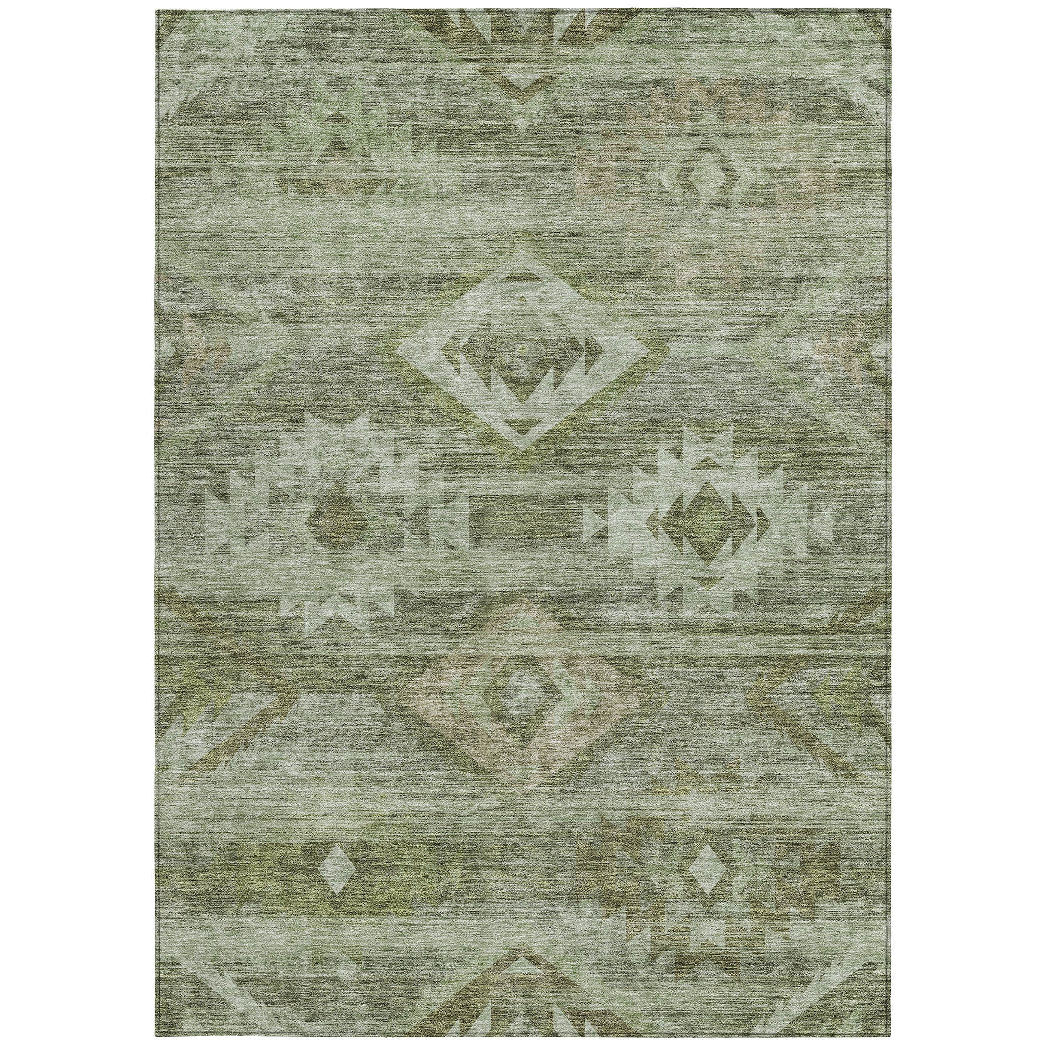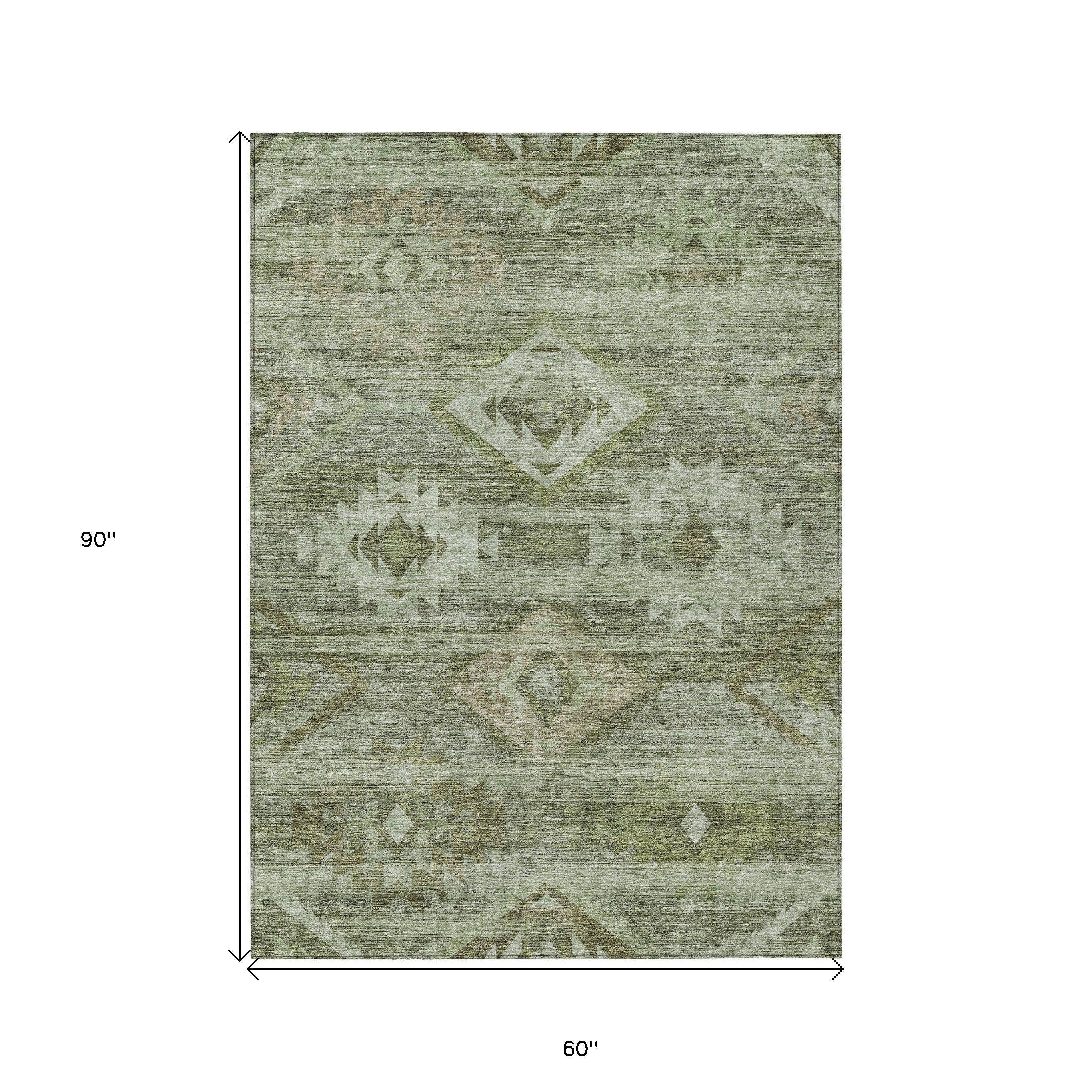 5' X 8' Olive Green And Fern Green Southwestern Washable Indoor Outdoor Area Rug