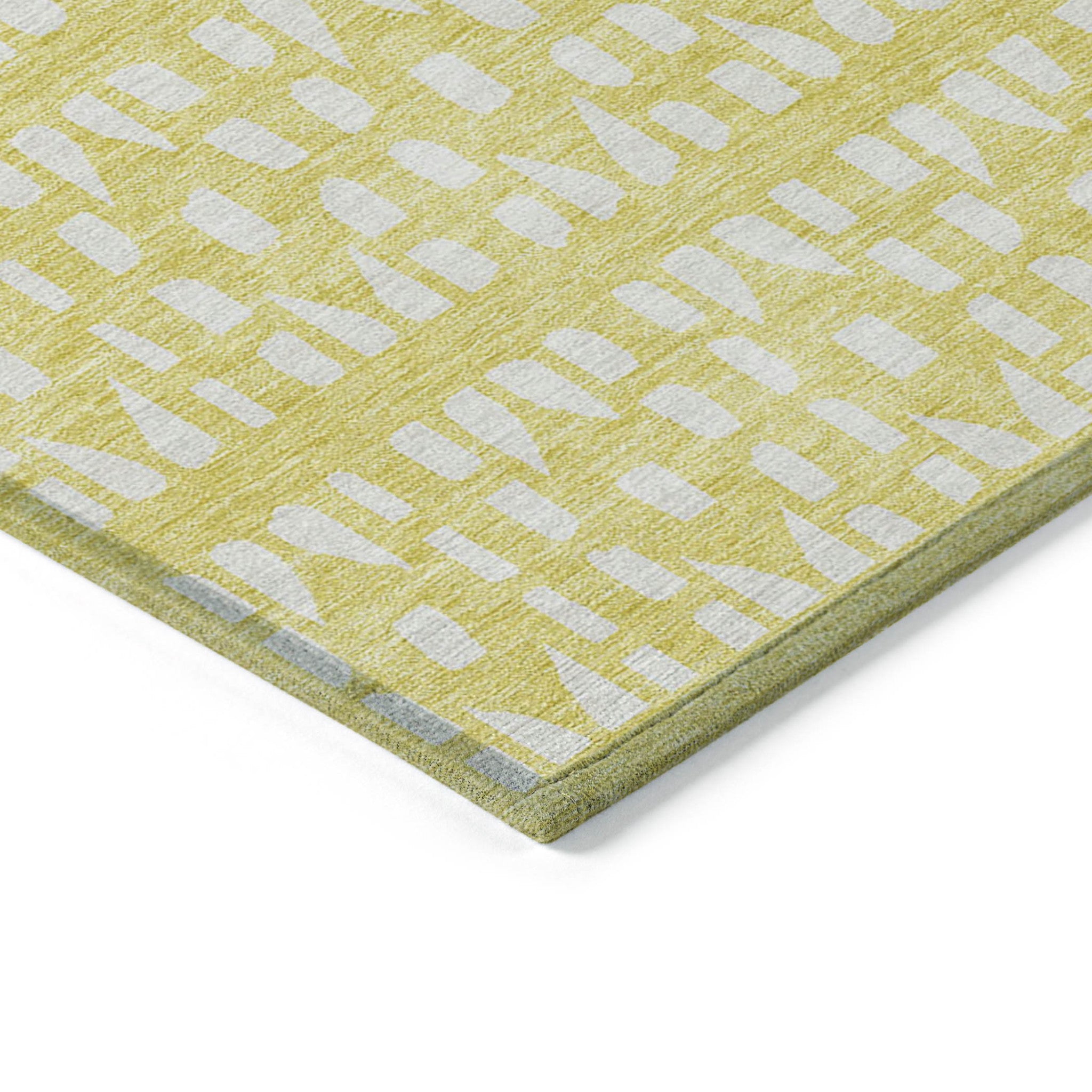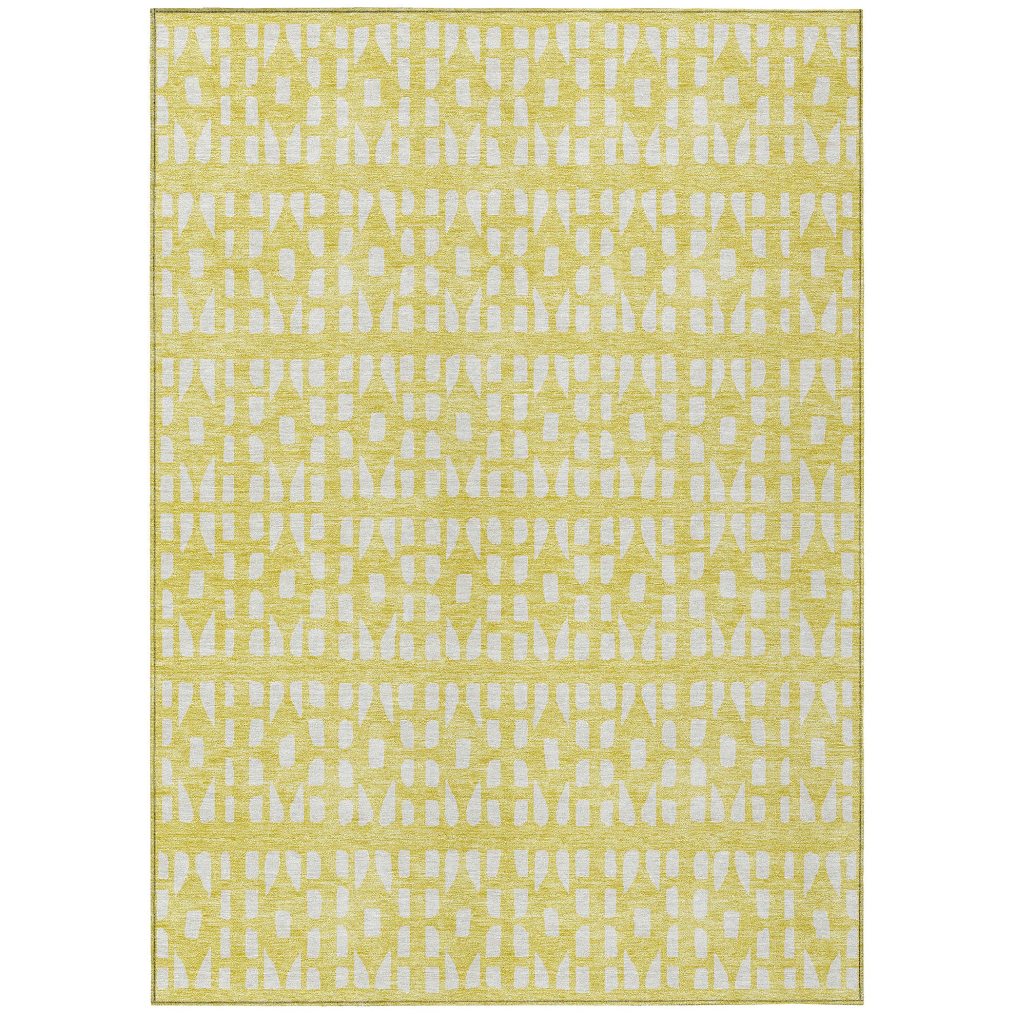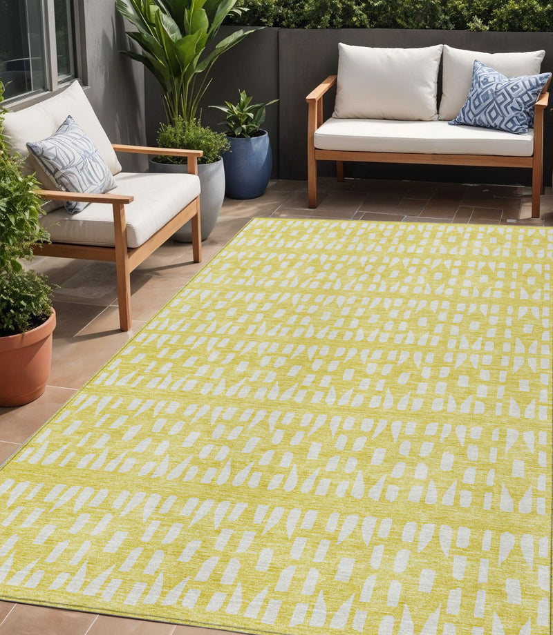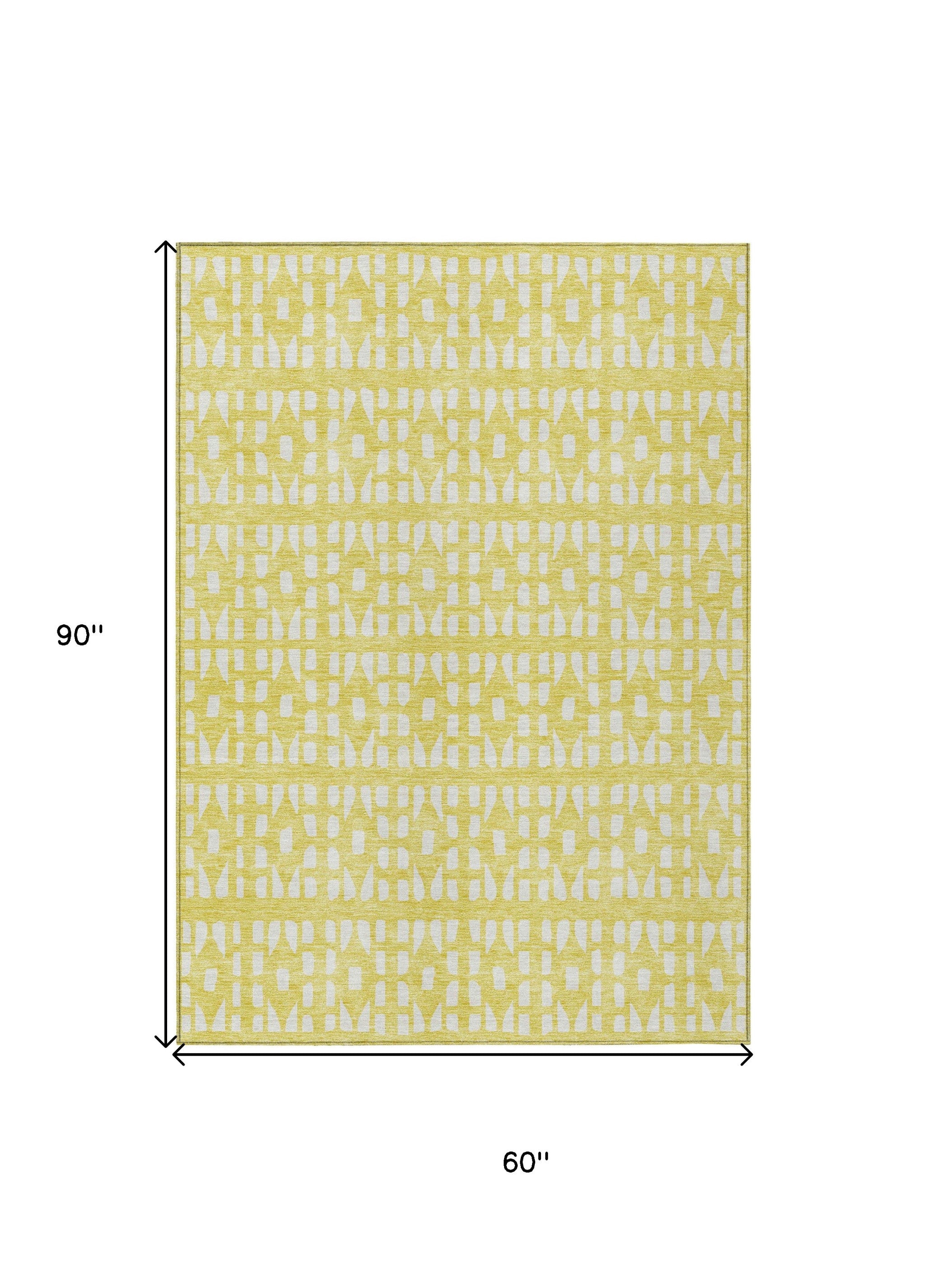 5' X 8' Yellow And Ivory Geometric Washable Indoor Outdoor Area Rug