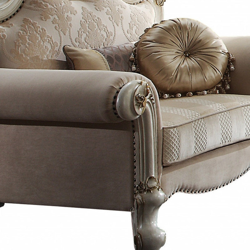 50" Pearl Fabric Floral Arm Chair And Toss Pillows