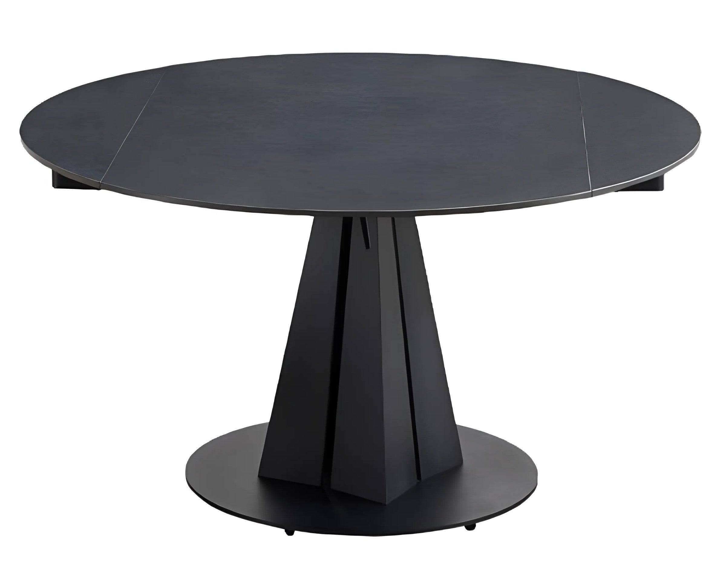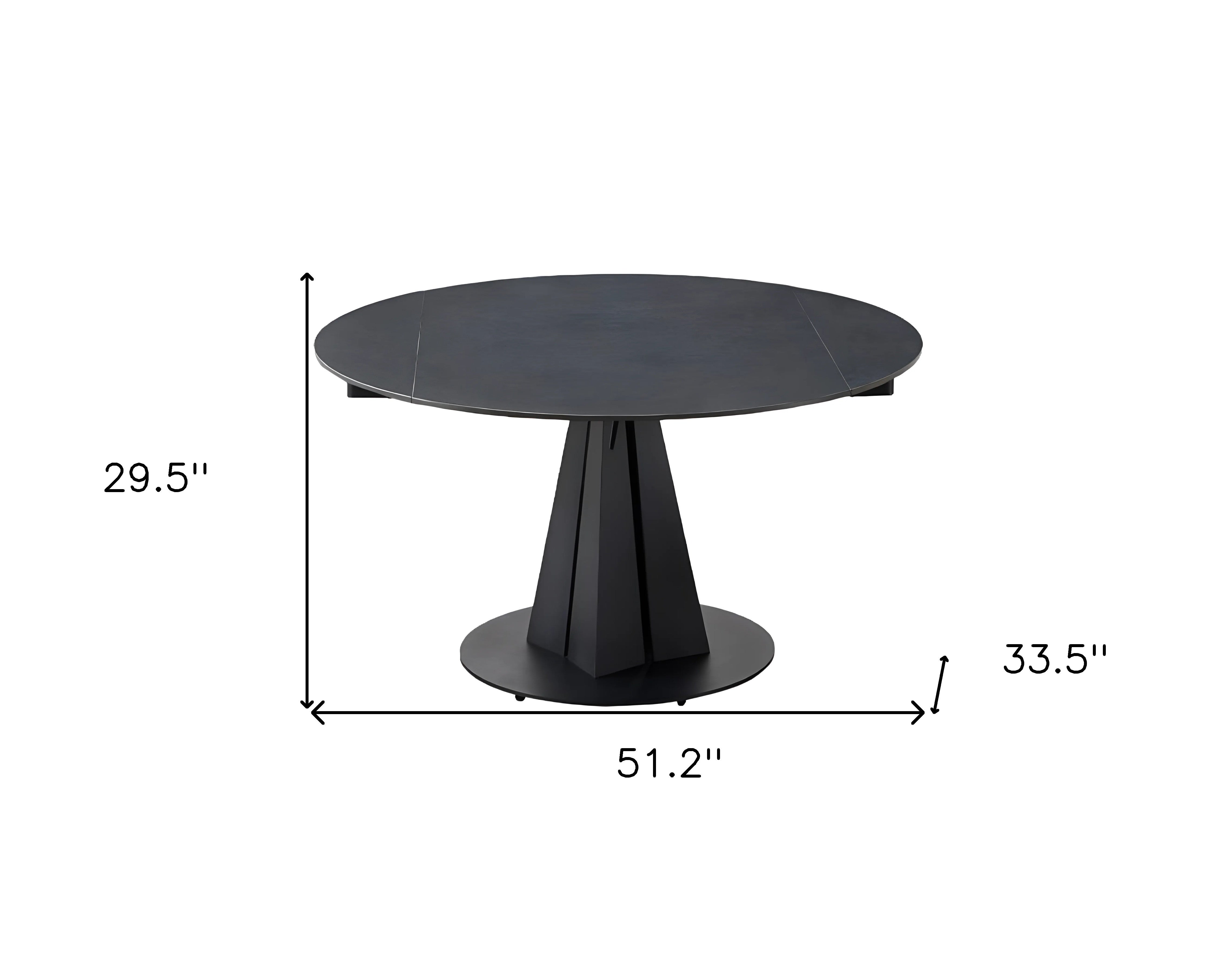 51" Black Stone and Metal Self-Storing Leaf Pedestal Base Round Top Extendable Dining Table