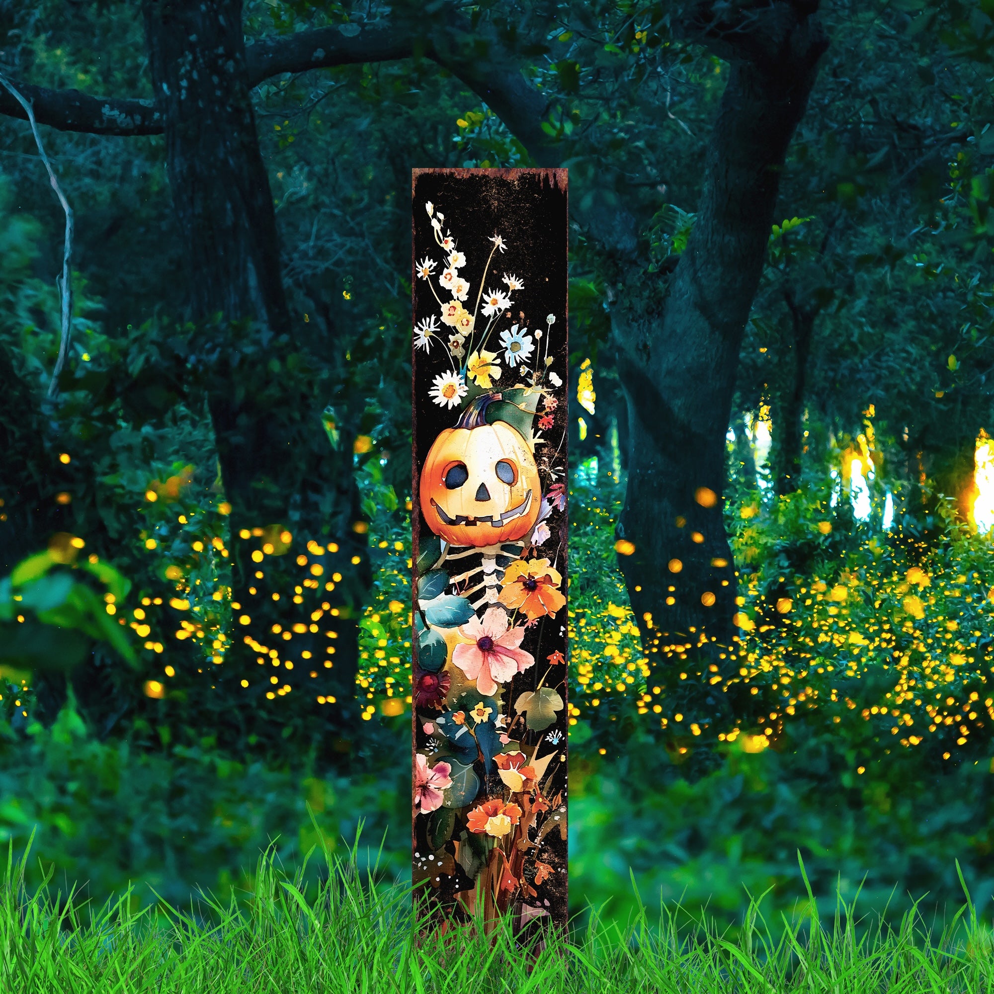 The 7-inch black orange pink and white solid wood watercolor floral halloween jack-o-lantern garden stake adds a festive touch to your outdoor space. Made from durable solid wood, this garden stake is perfect for embracing the halloween spirit. Its traditional style blends seamlessly with various garden themes while showcasing vibrant colors of black, orange, pink, and white that attract attention. Enhance your garden or yard with this charming piece that brings a playful element to your halloween decorations. This garden stake serves as a delightful focal point for trick-or-treaters and guests alike. Elevate your outdoor decor with a unique accessory that captures the essence of the season beautifully. 7.00-inch h x 42.00-inch w x 1.00-inch d.