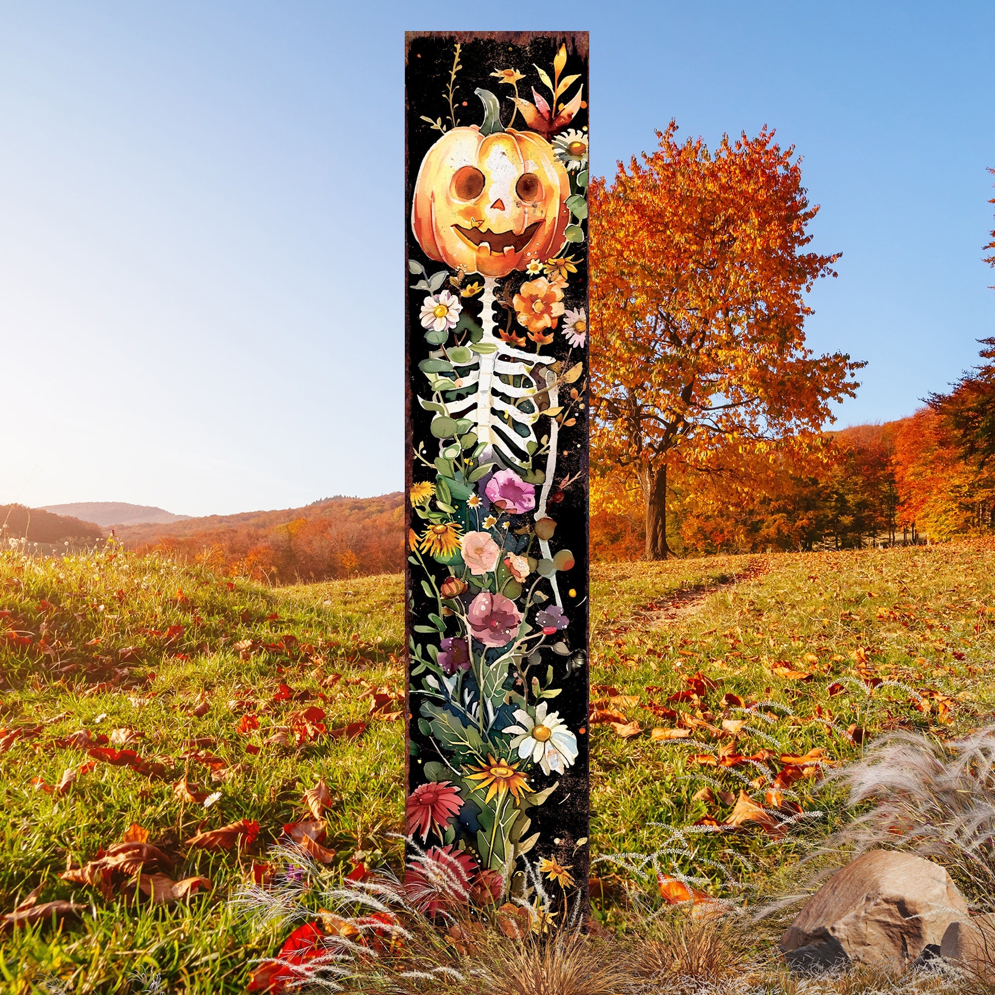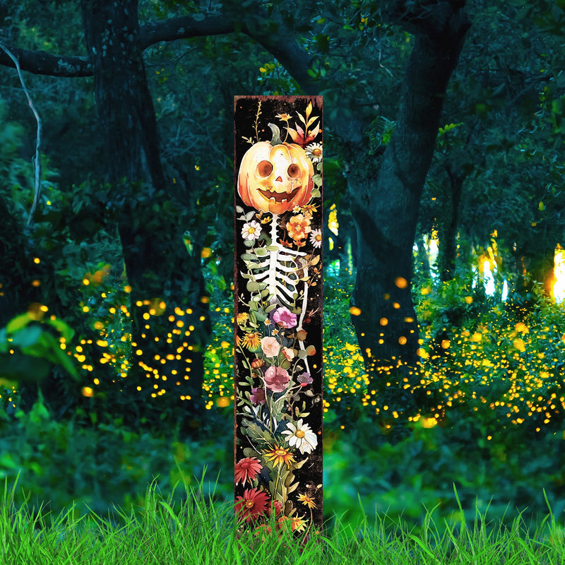 7" Black Orange White And Green Solid Wood Watercolor Floral Halloween Jack-O-Lantern Garden Stake Passer au contenu