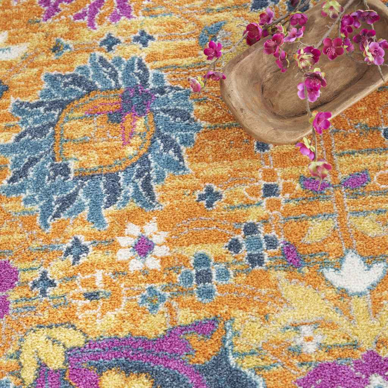 8' Gold Round Floral Power Loom Area Rug Passer au contenu