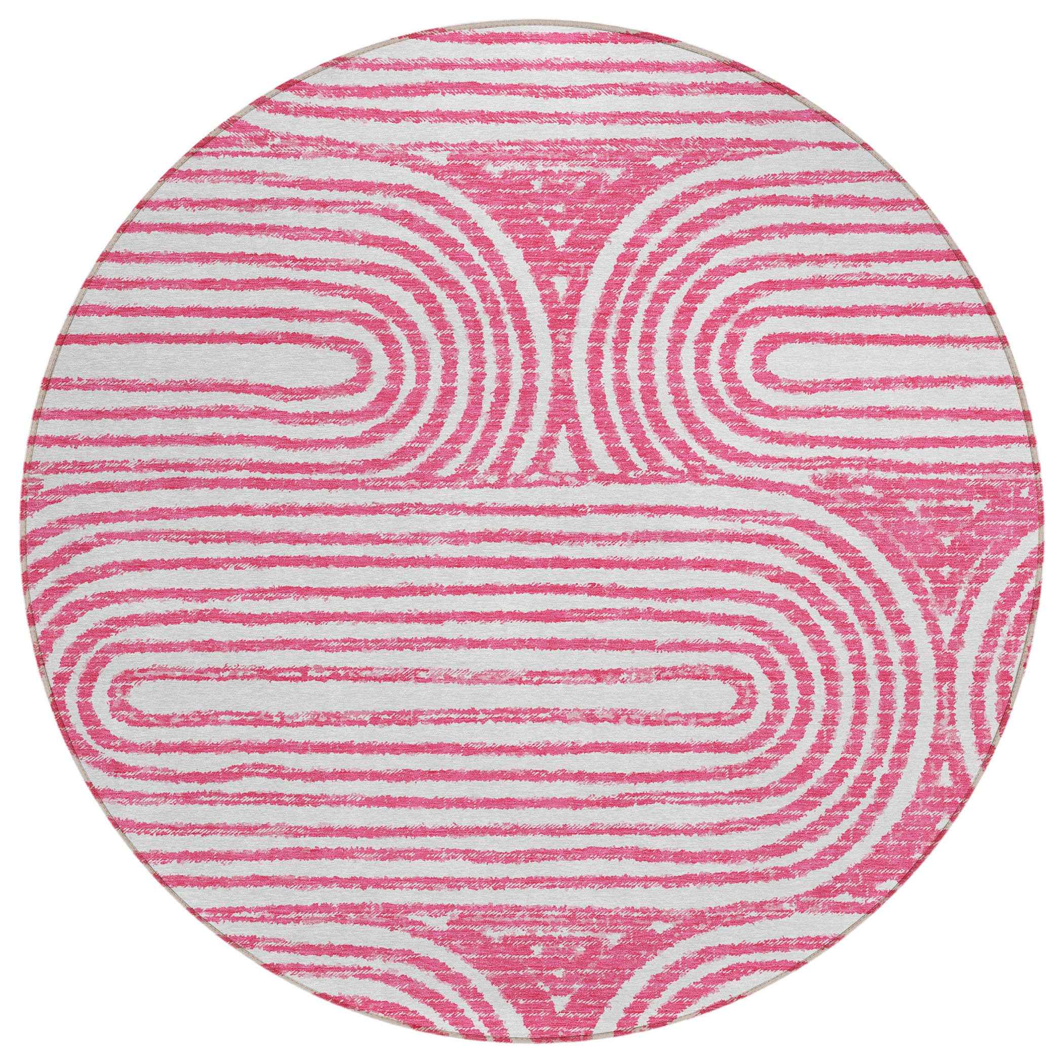 Add some artistry to your room with this 8-foot round blush round abstract washable stain resistant non skid indoor outdoor area rug. This geometric round shaped rug features a abstract pattern in blush that combines a good looking print with a unique and updated shape. The mix of shape, color, and design gives this rug refreshing visual interest. Ideal for spaces with kids and pets, this rug is stain resistant to help repel stains and spilled liquids. Area rugs help to give warmth and sense of home to your space. 96-inch H x 96-inch W x 0.19-inch D