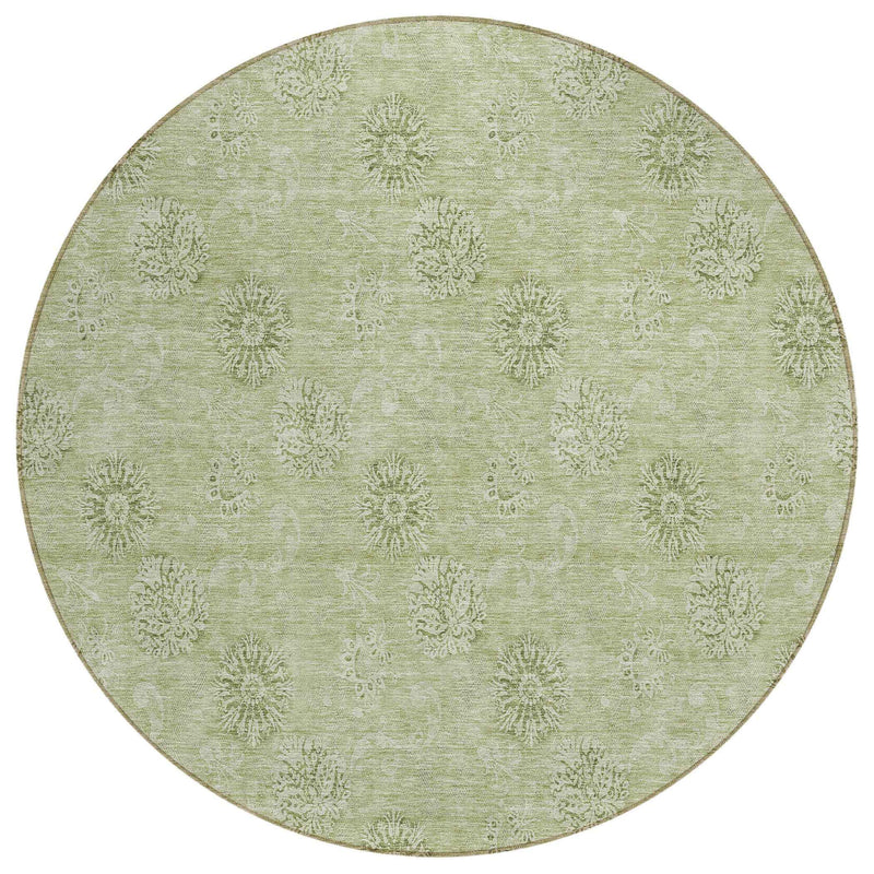 8' Sage And Artichoke Green Round Floral Washable Indoor Outdoor Area Rug