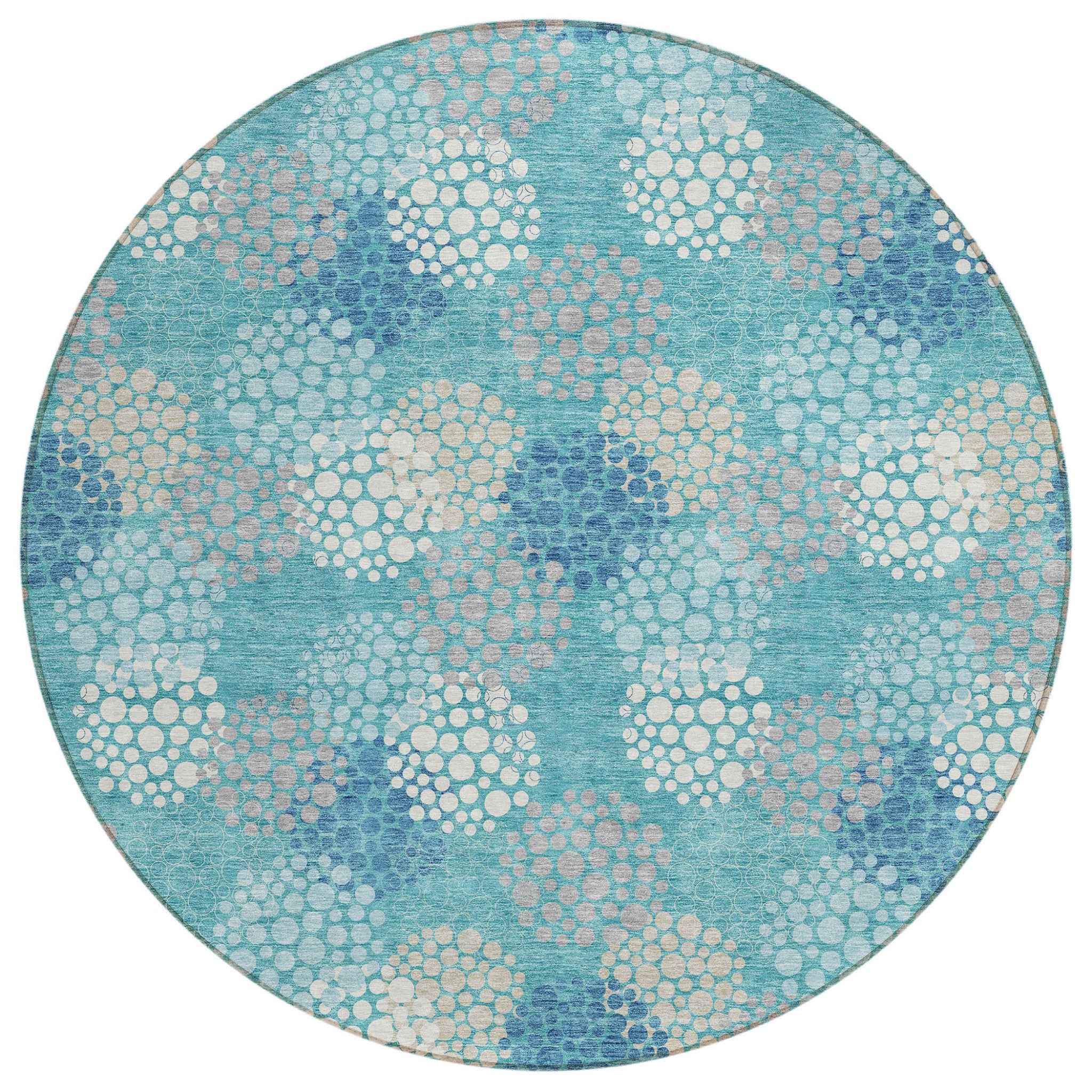 8' Teal Blue Gray And Ivory Round Polka Dot Washable Indoor Outdoor Area Rug