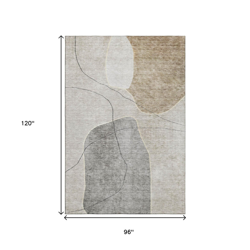8' X 10' Beige And Brown Abstract Washable Area Rug With UV Protection
