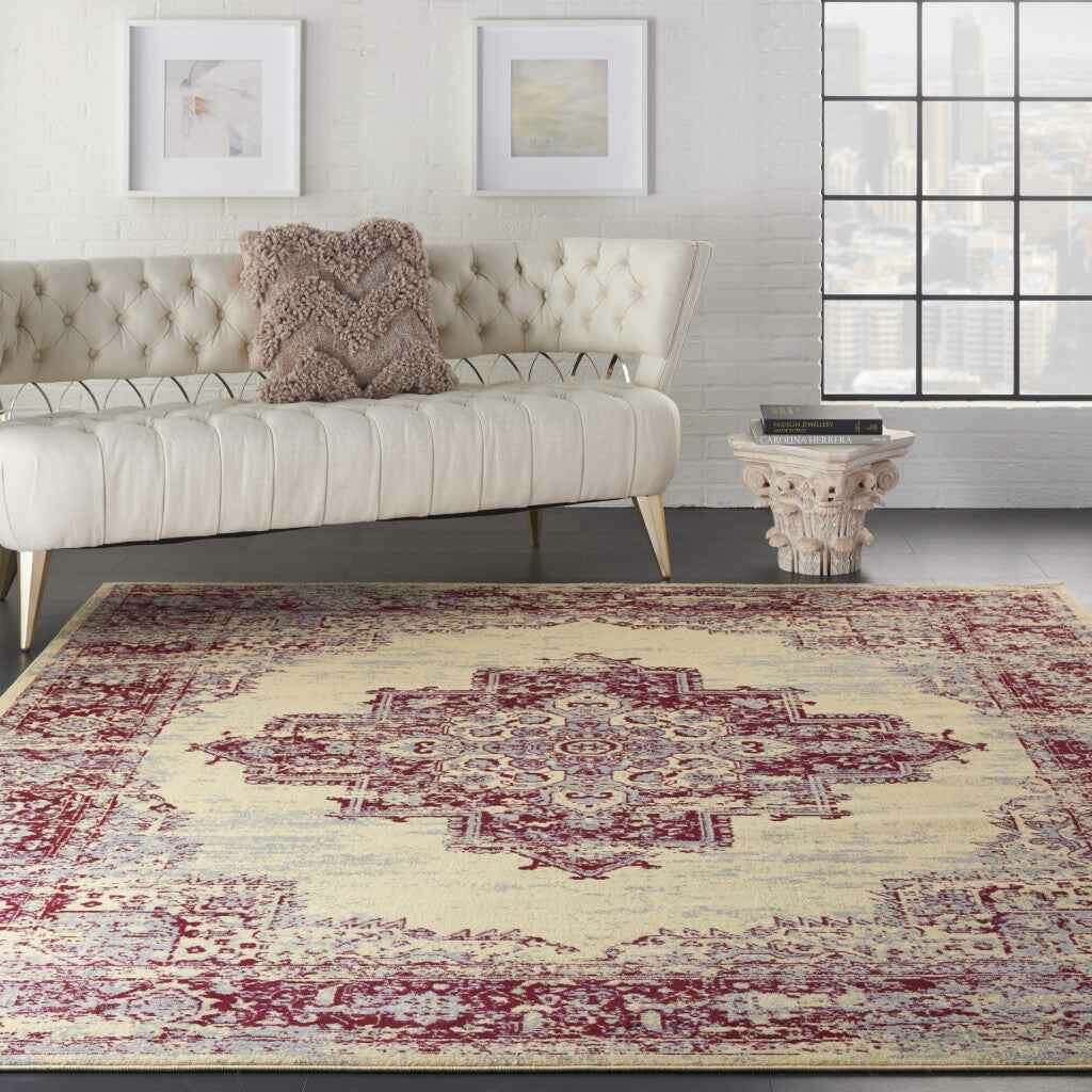 8' X 10' Cream Damask Power Loom Area Rug