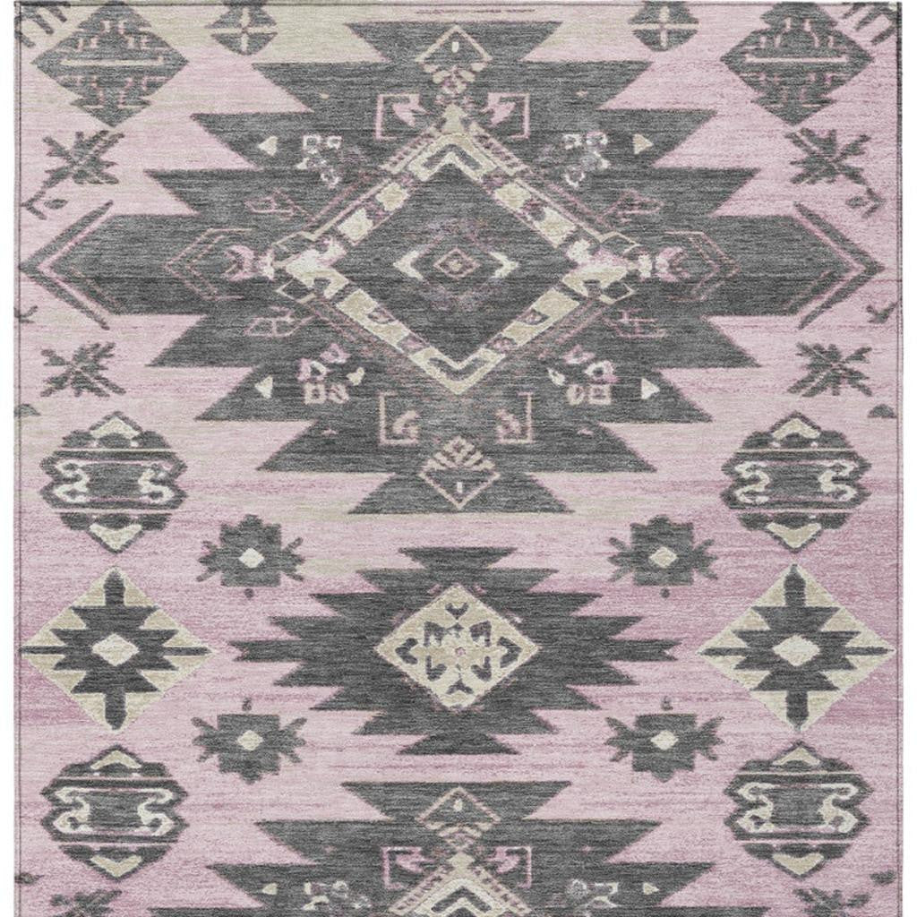 8' X 10' Pink And Charcoal Tribal Washable Indoor Outdoor Area Rug