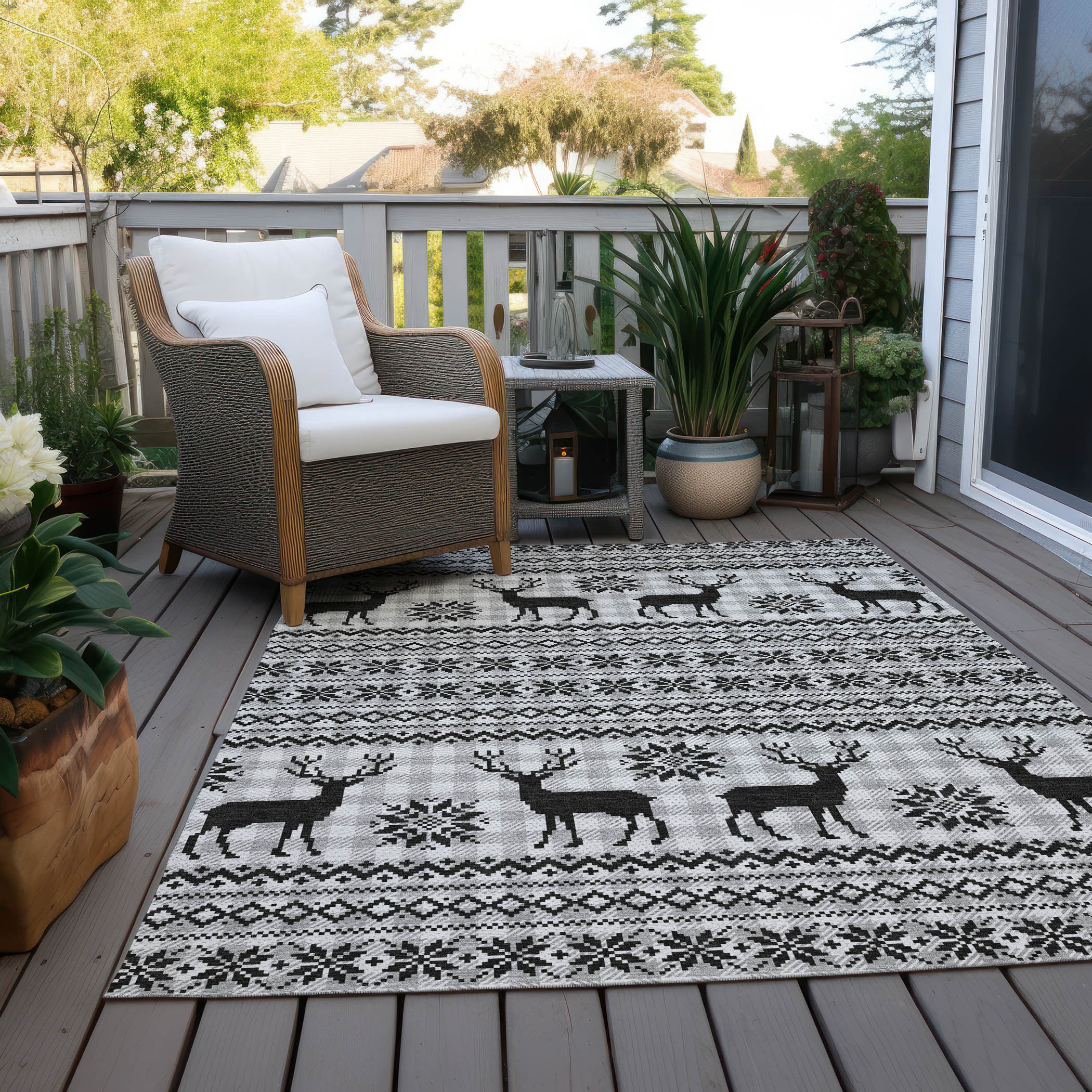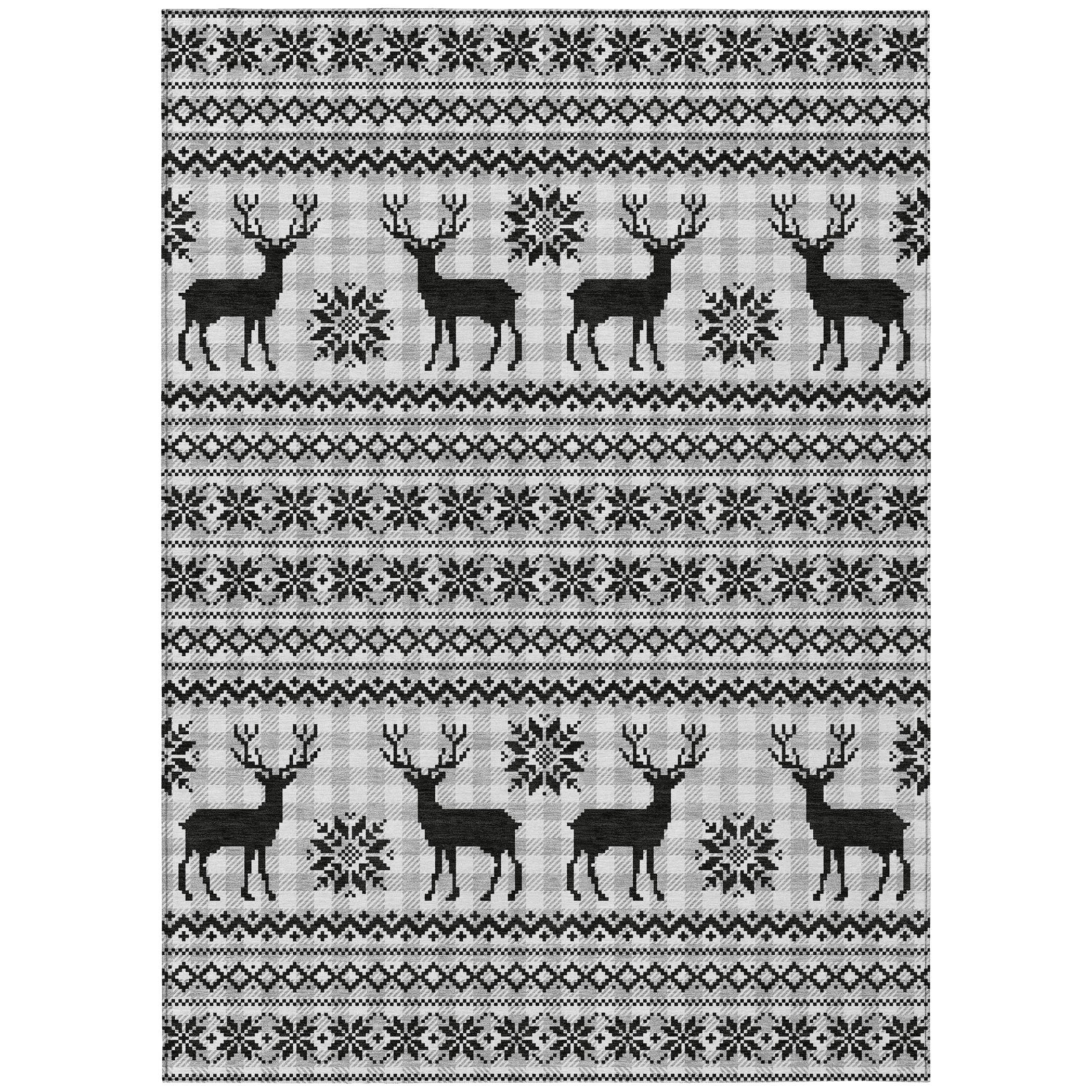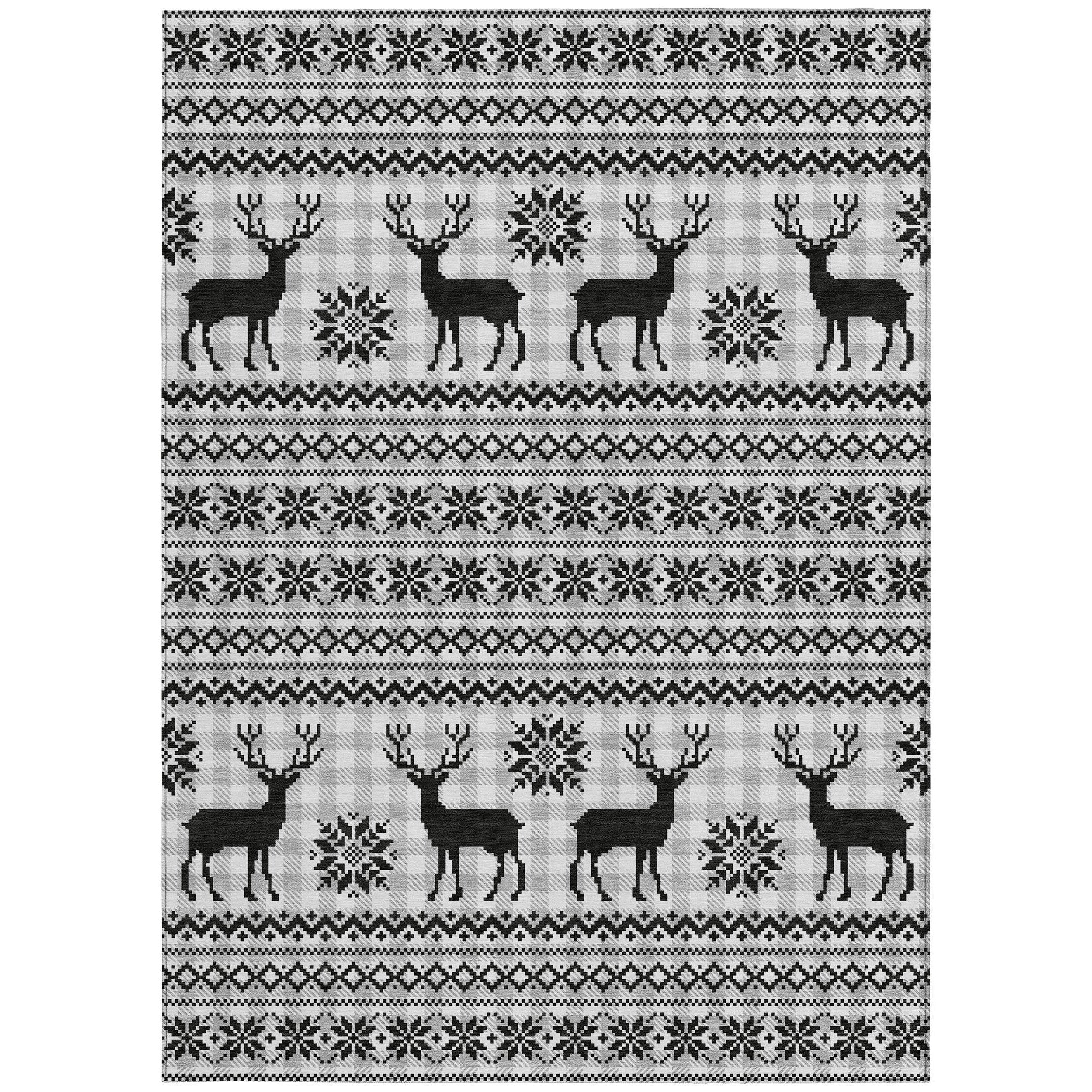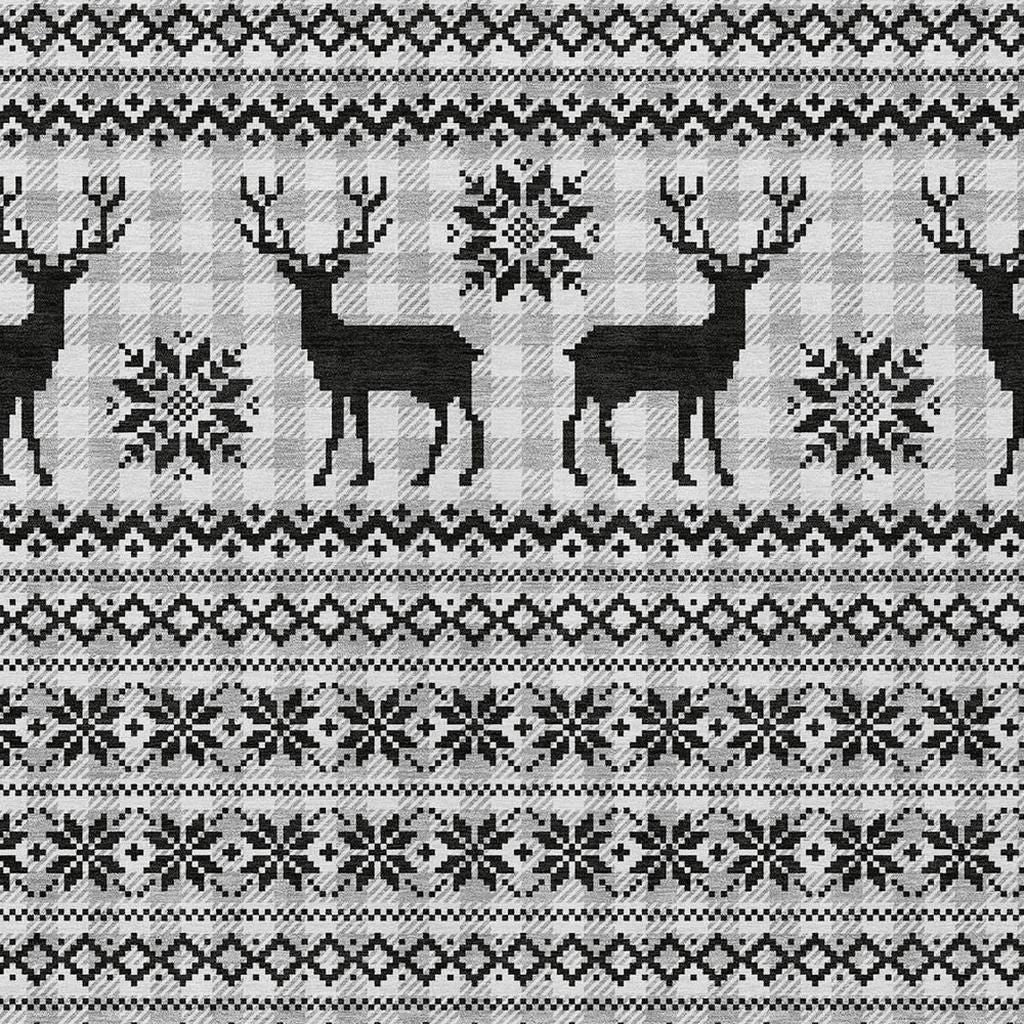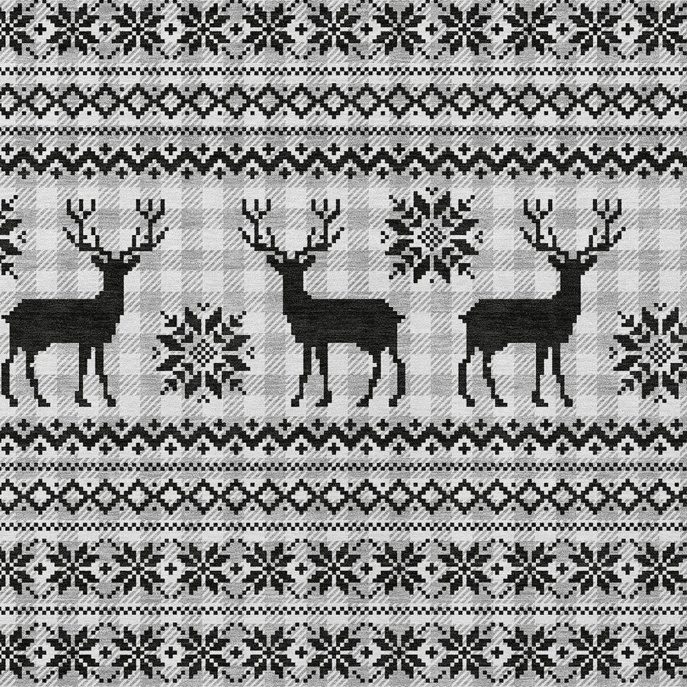 8' X 10' Silver Black And Ivory Deer Washable Indoor Outdoor Area Rug