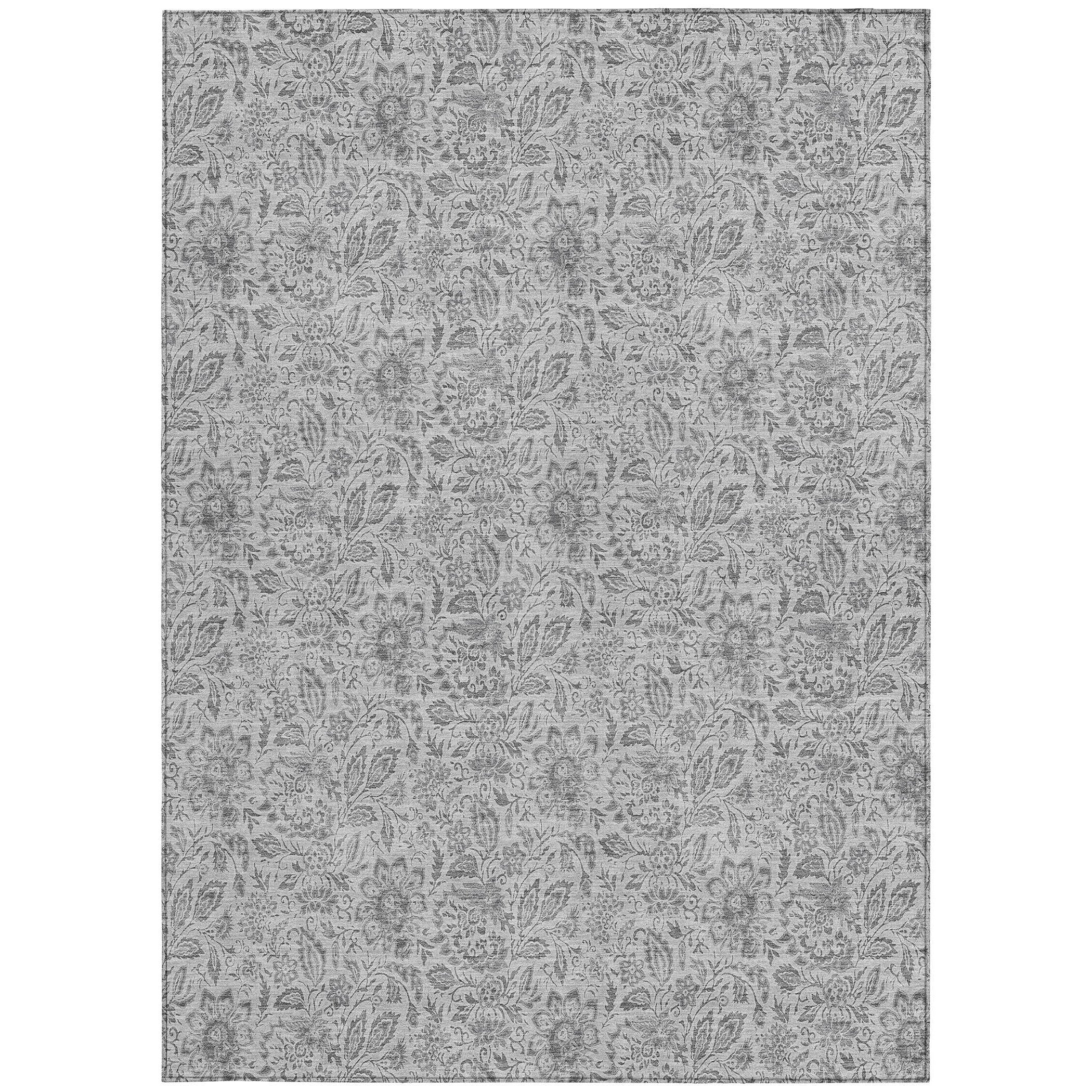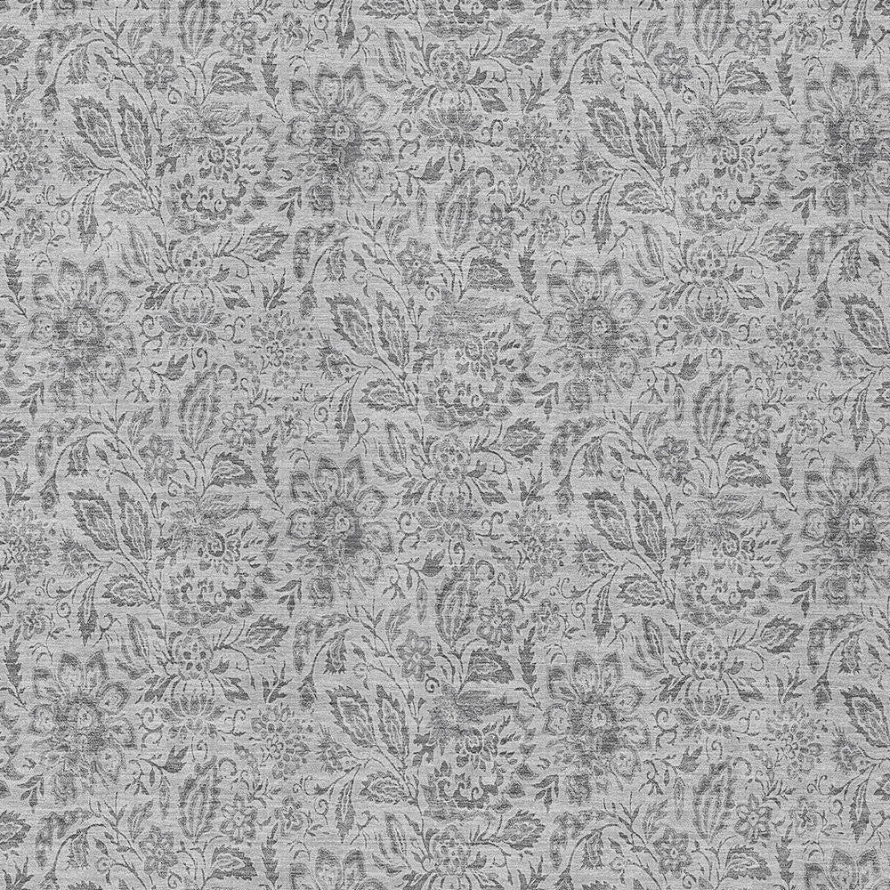 8' X 10' Silver Gray And Charcoal Floral Washable Indoor Outdoor Area Rug