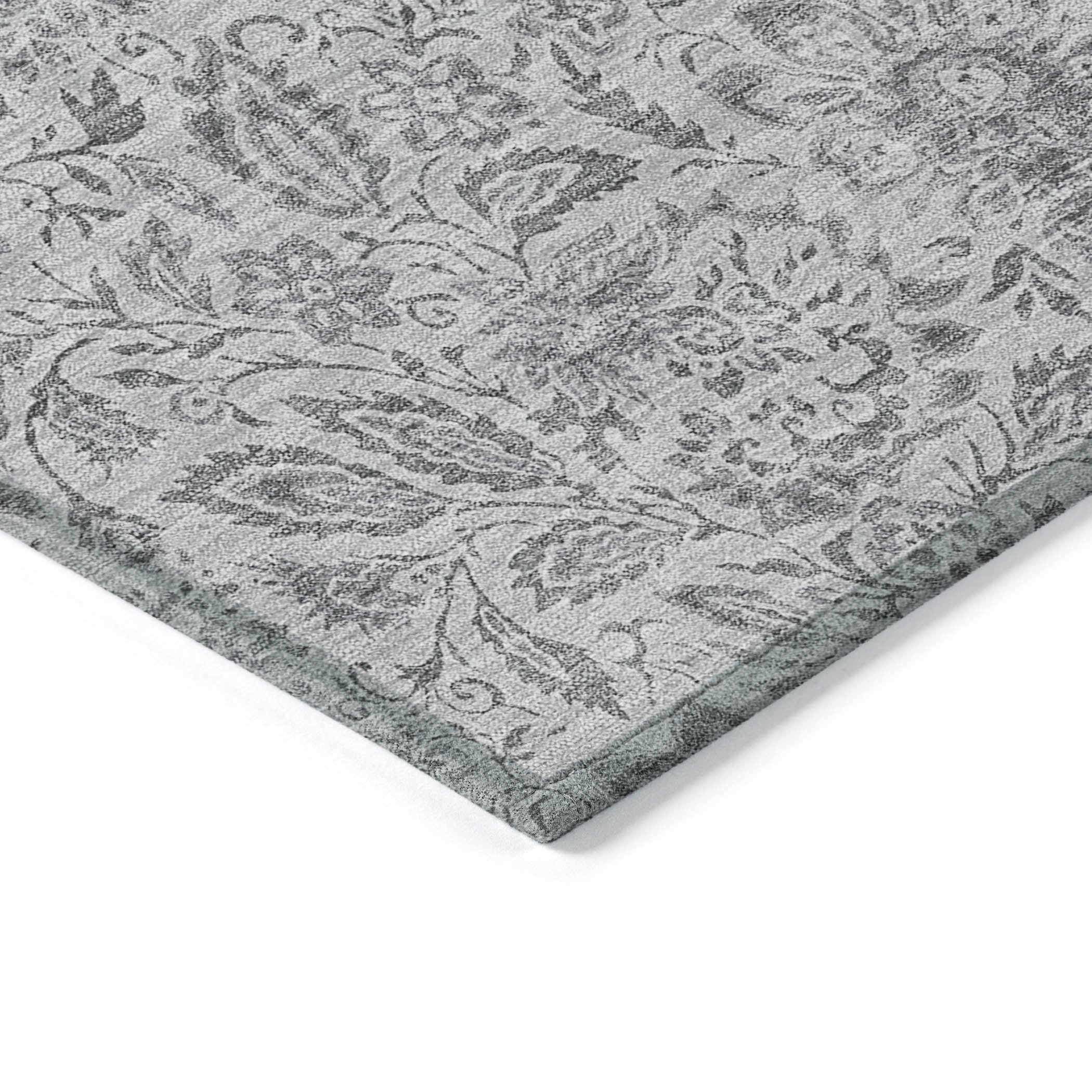 8' X 10' Silver Gray And Charcoal Floral Washable Indoor Outdoor Area Rug Passer au contenu