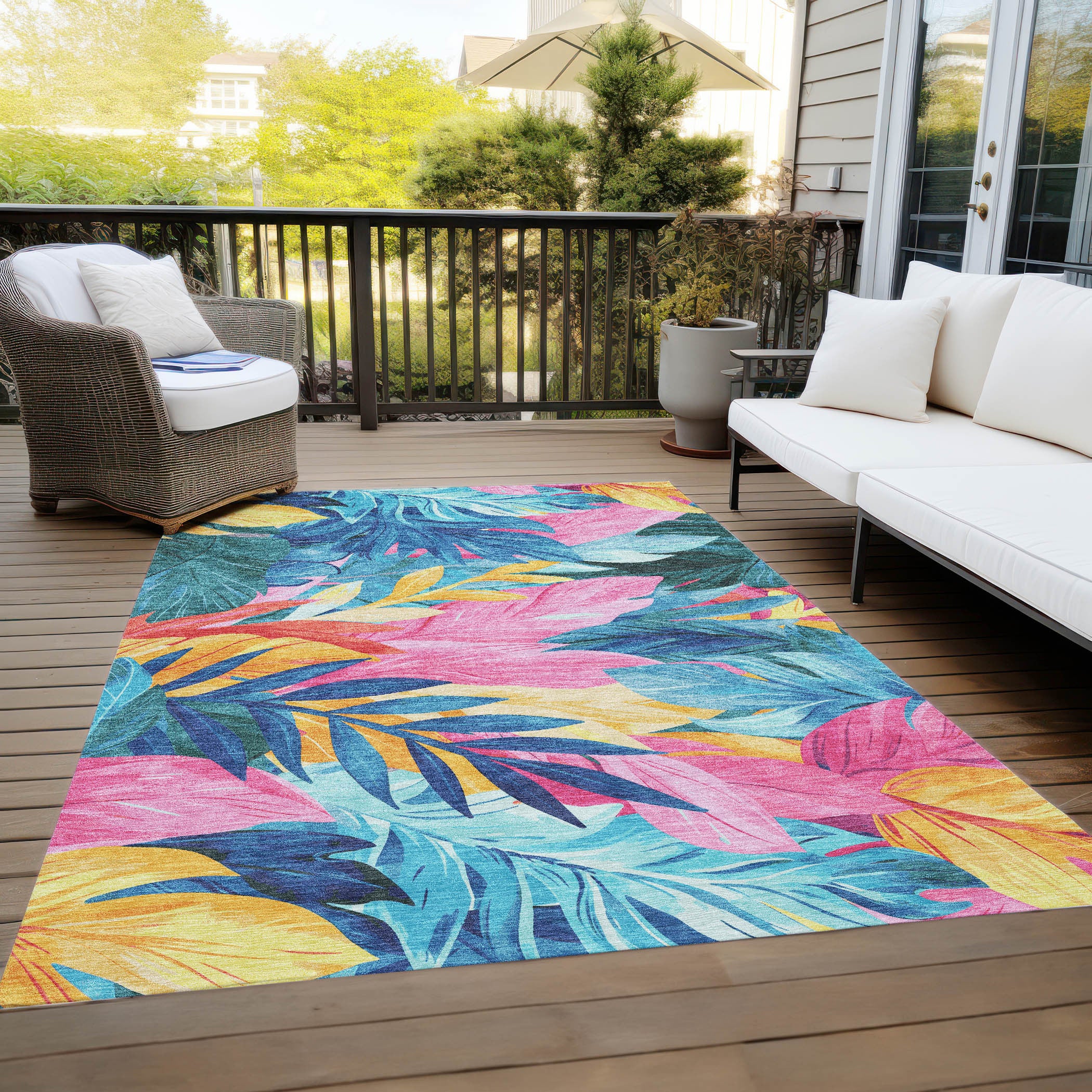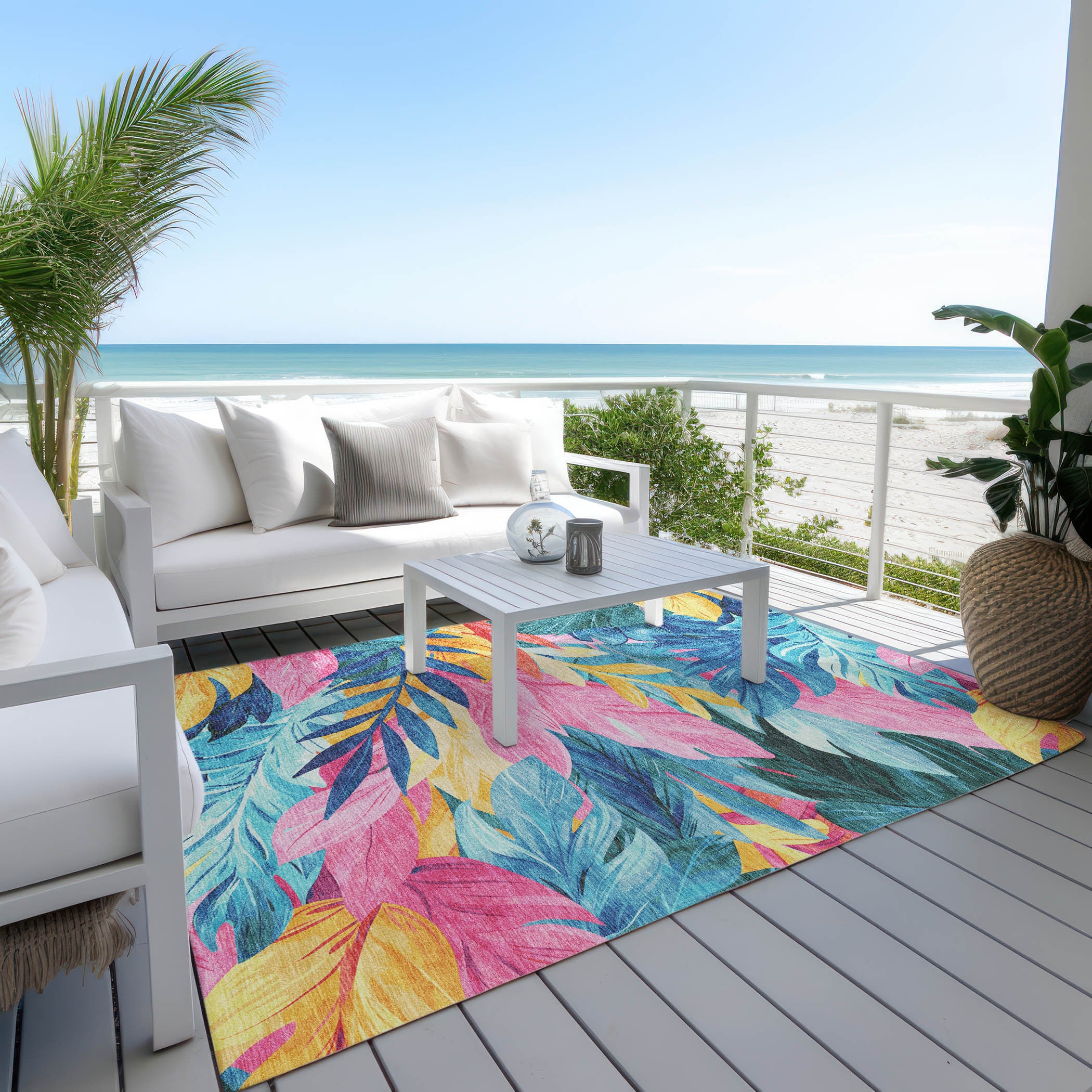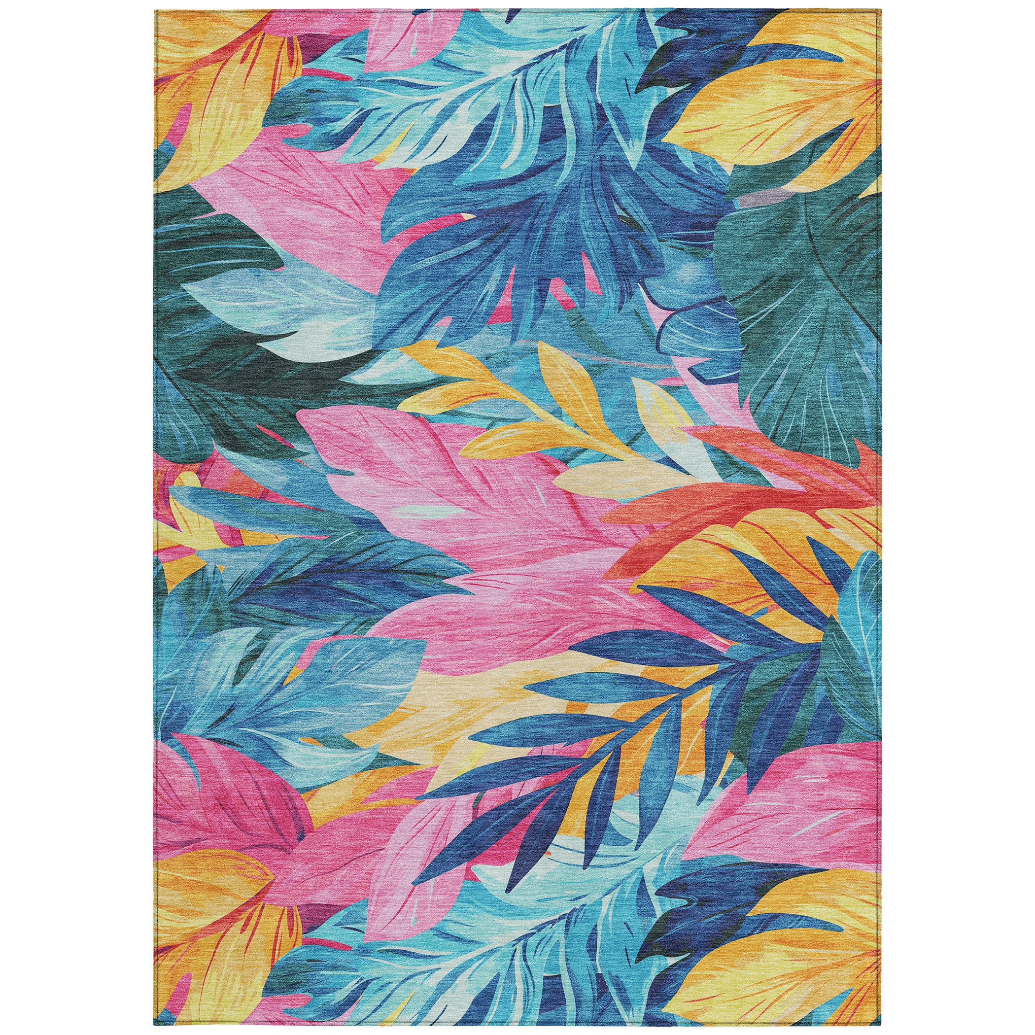 Add great coloration and comfortable texture to your space with this 8-foot x 10-foot sky blue and pink floral washable indoor outdoor area rug. This rectangle shaped rug features a floral design that will work well both indoors or out. A classic shape marries with good looking design for your living room, hall, bedroom, porch, patio, or poolside. Ideal for outdoor spaces or high traffic areas with kids and pets, this rug is made from heavy duty polyester that is stain resistant to help repel water, dirt, and stains. Versatile in use, durable, and easy to maintain, this rug is an ideal solution to add a decorative and inviting touch to your indoor or outdoor space. 96-inch h x 120-inch w x 0.19-inch d.
