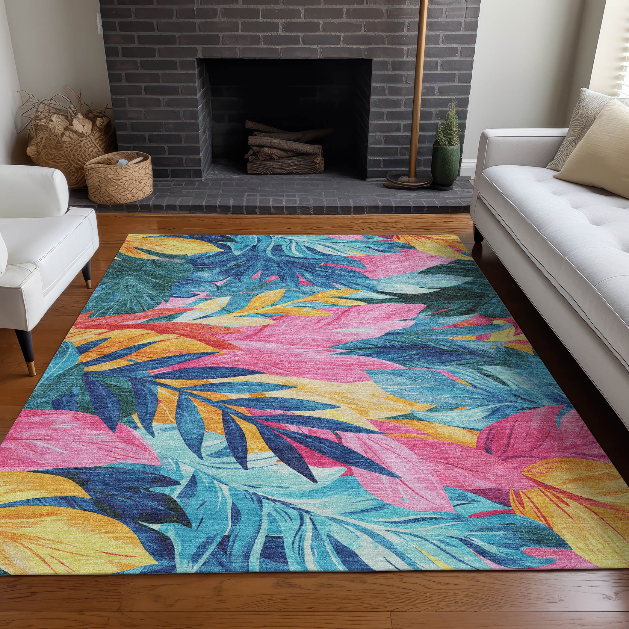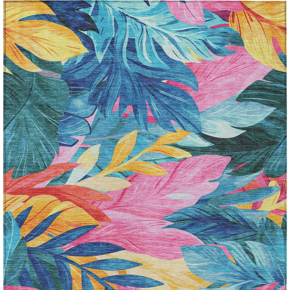 8' X 10' Sky Blue And Pink Floral Washable Indoor Outdoor Area Rug