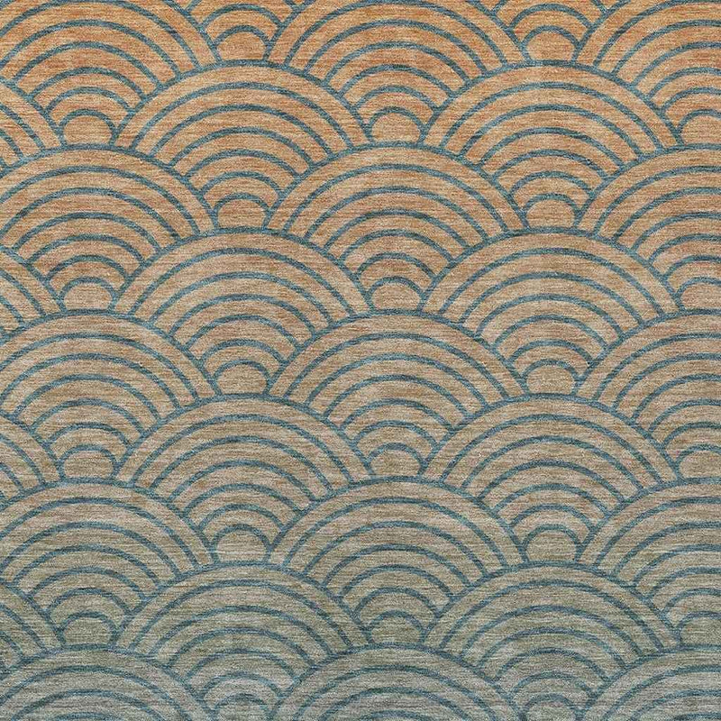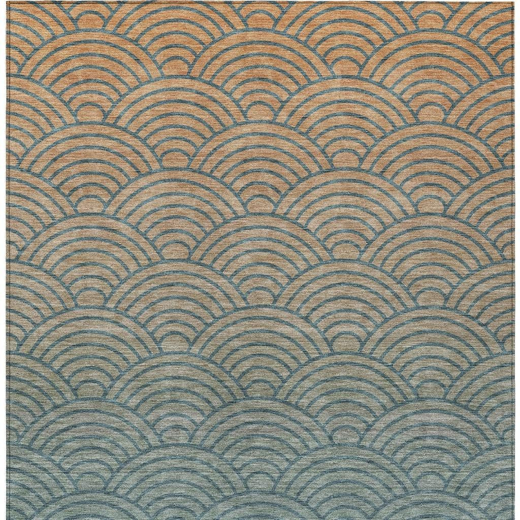 8' X 10' Teal Blue And Orange Geometric Washable Indoor Outdoor Area Rug