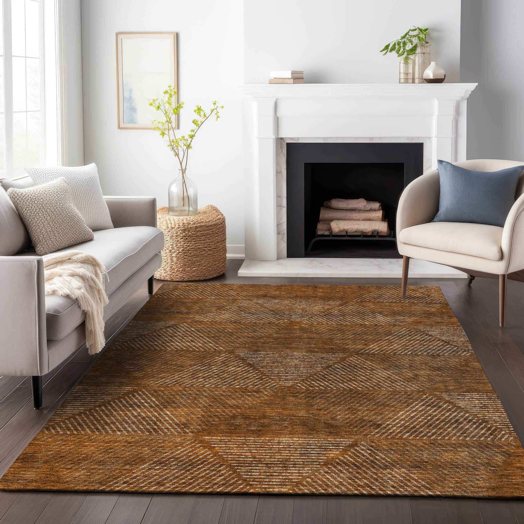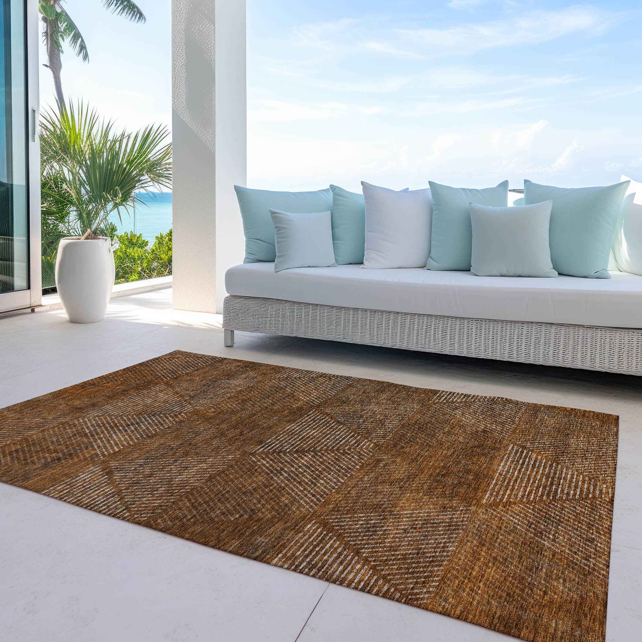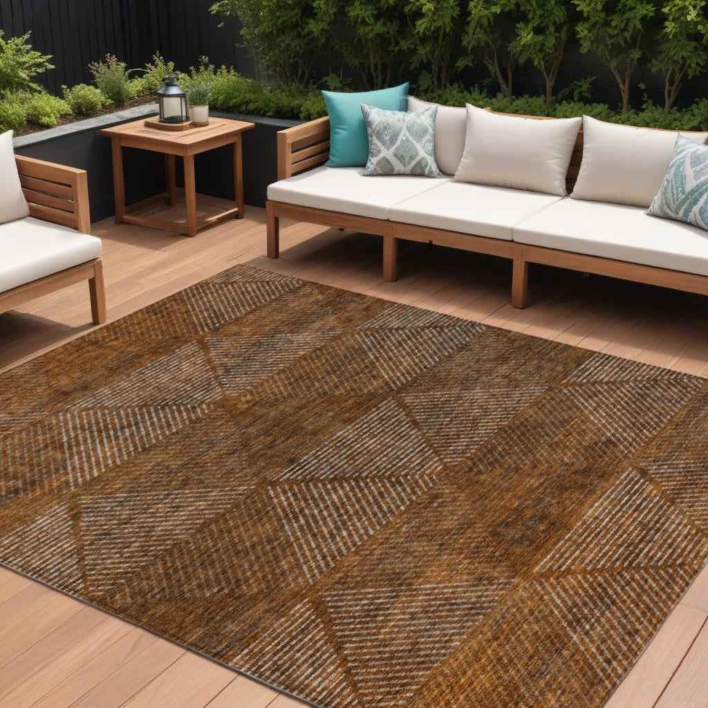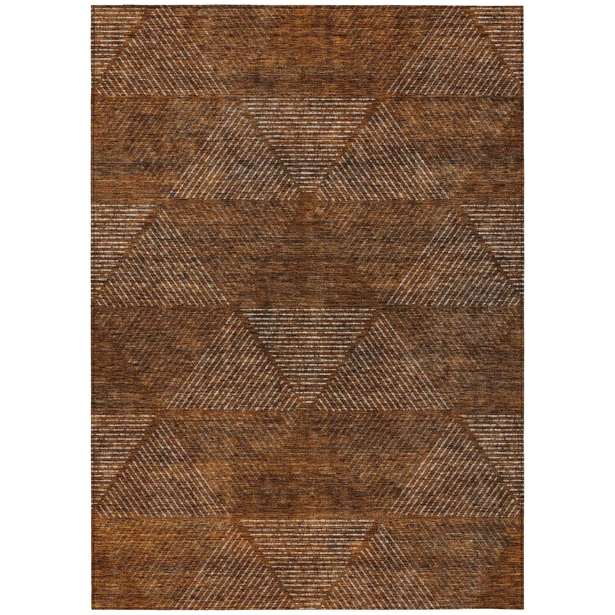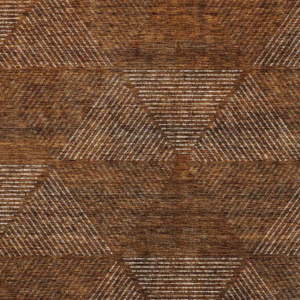 8' X 10' Terra Cotta Copper And Beige Geometric Washable Indoor Outdoor Area Rug