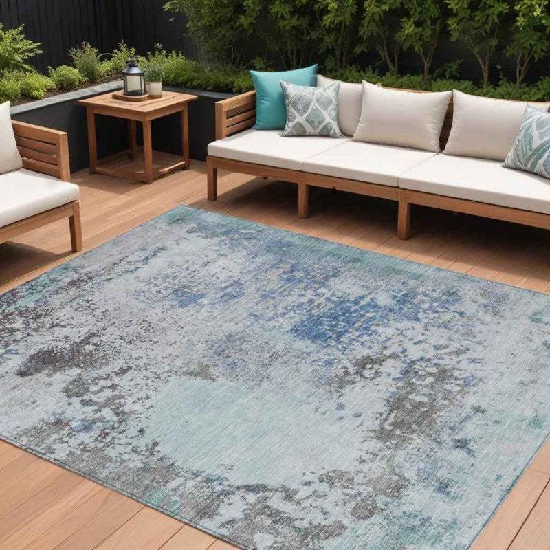 Add great coloration and comfortable texture to your space with this 8-foot x 10-foot turquoise denim blue and gray abstract washable indoor outdoor area rug. This rectangle shaped rug features a abstract design that will work well both indoors or out. A classic shape marries with good looking design for your living room, hall, bedroom, porch, patio, or poolside. Ideal for outdoor spaces or high traffic areas with kids and pets, this rug is made from heavy duty polyester that is stain resistant to help repel water, dirt, and stains. Versatile in use, durable, and easy to maintain, this rug is an ideal solution to add a decorative and inviting touch to your indoor or outdoor space. 96-inch h x 120-inch w x 0.19-inch d.