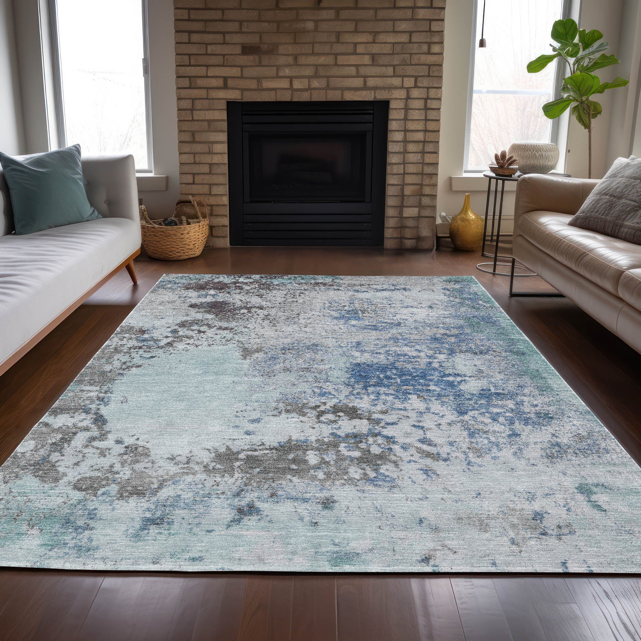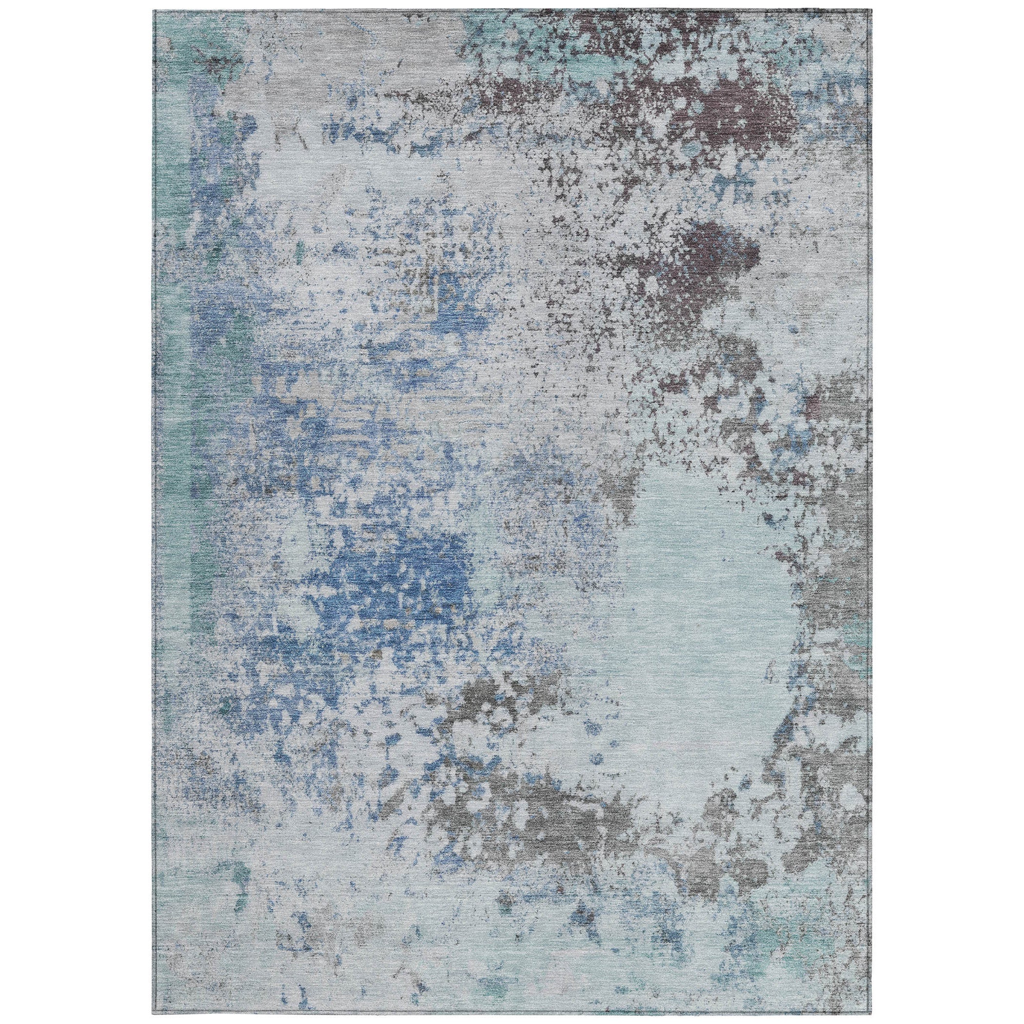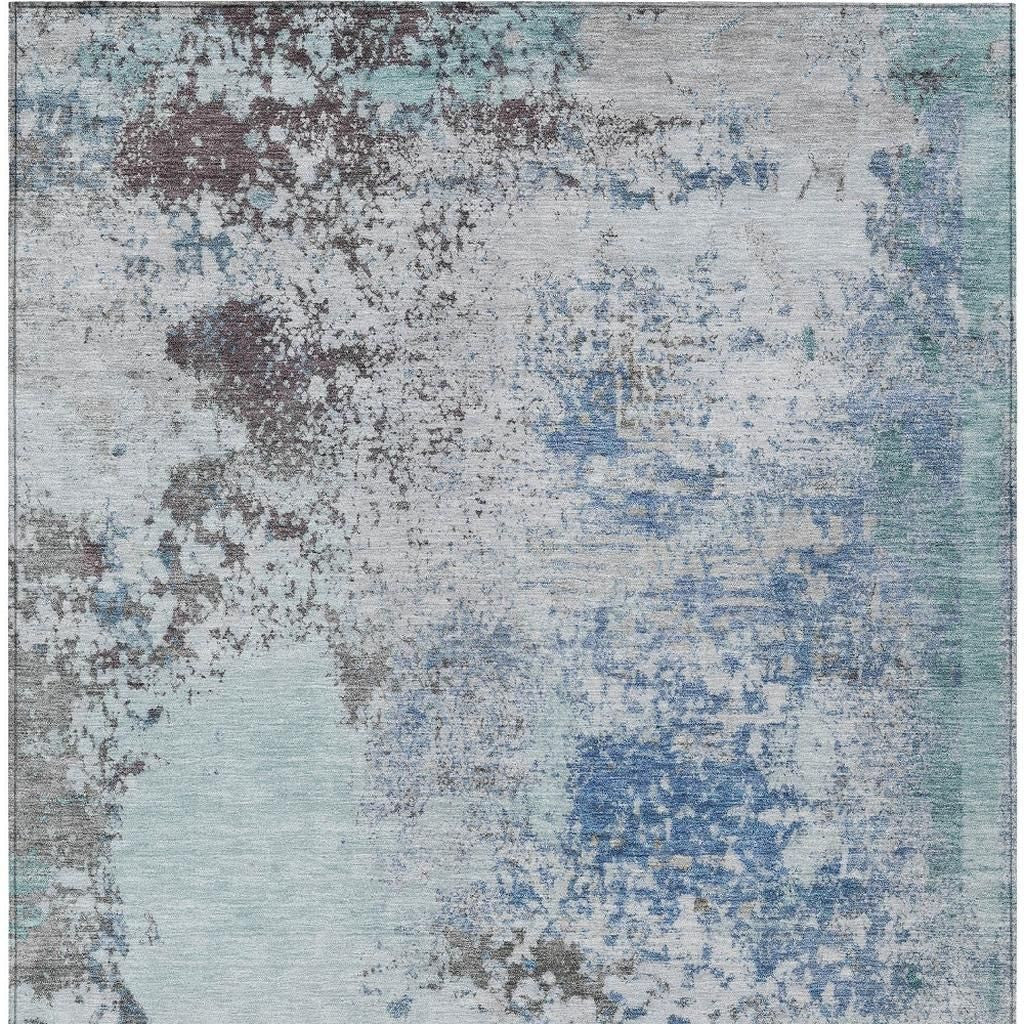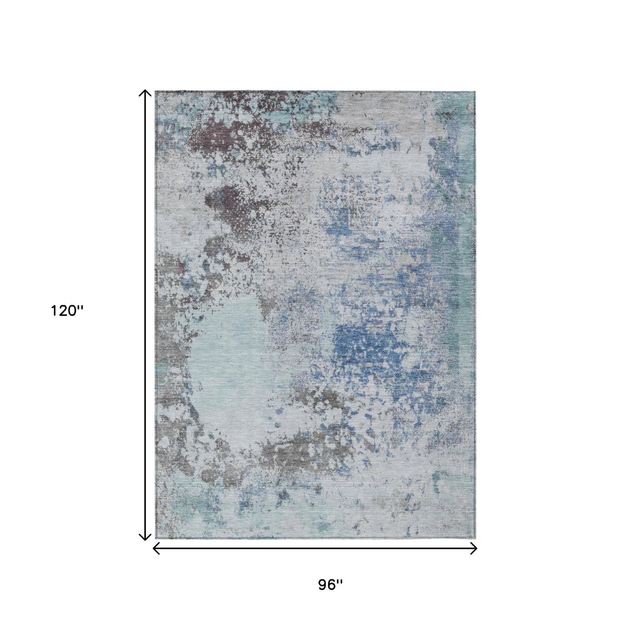8' X 10' Turquoise Denim Blue And Gray Abstract Washable Indoor Outdoor Area Rug