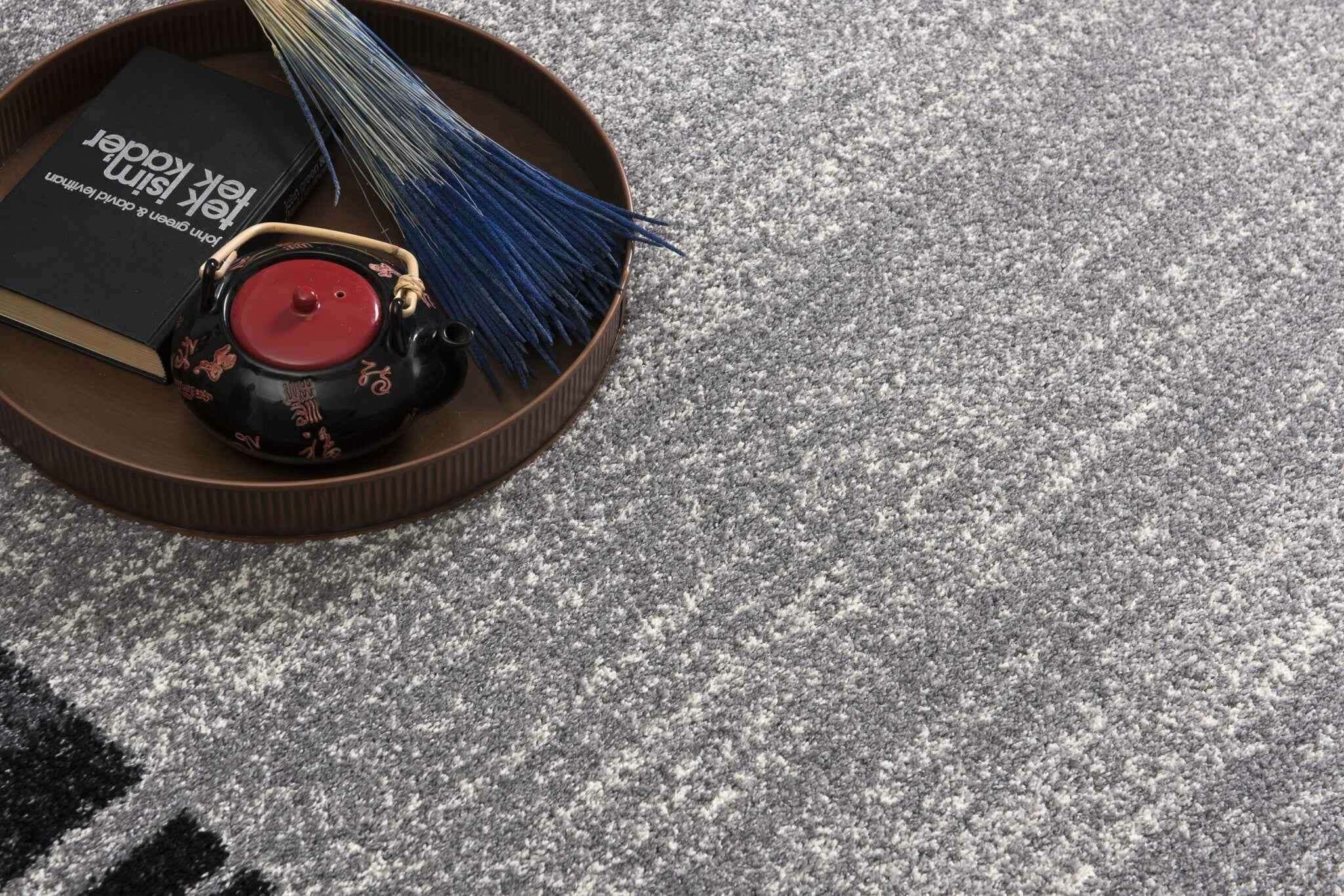 Showcasing the ultimate form of sophistication in its plain look, this Gray Modern Bordered Area Rug will induce a relaxing ambiance into your modern living space. The distressed solid base in a dove gray abrash effect is uplifted by the clean-lined geometric frame to add a stylish edge to any contemporary setting. This Turkish-made rug is woven with 100% twisted polypropylene that speaks of its durability to last long and resist stains to keep its pristine look with low maintenance. Now you can experience a soft and sumptuous surface underfoot due to the high pile that adds to the surface interest making it an excellent choice for your bedroom, hallway, or living room. If you’re looking for a stylish accent to transform your interior space without being too loud, this neutral-hued area rug is the perfect pick for you! 126” x 93” x 0.8”