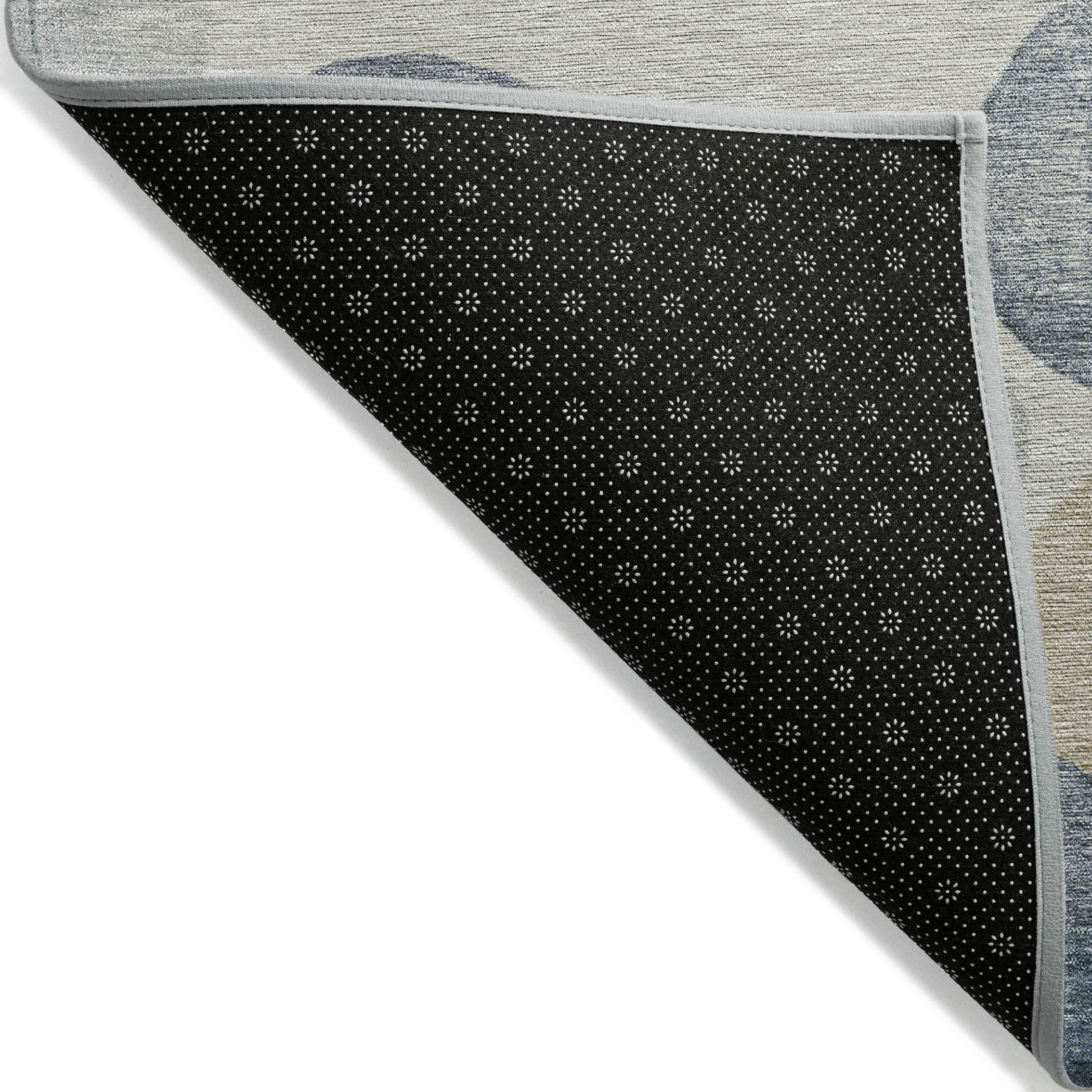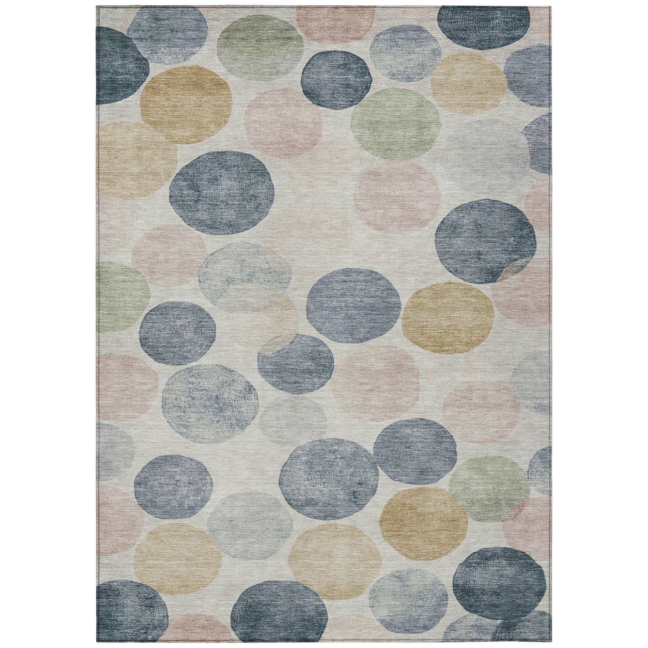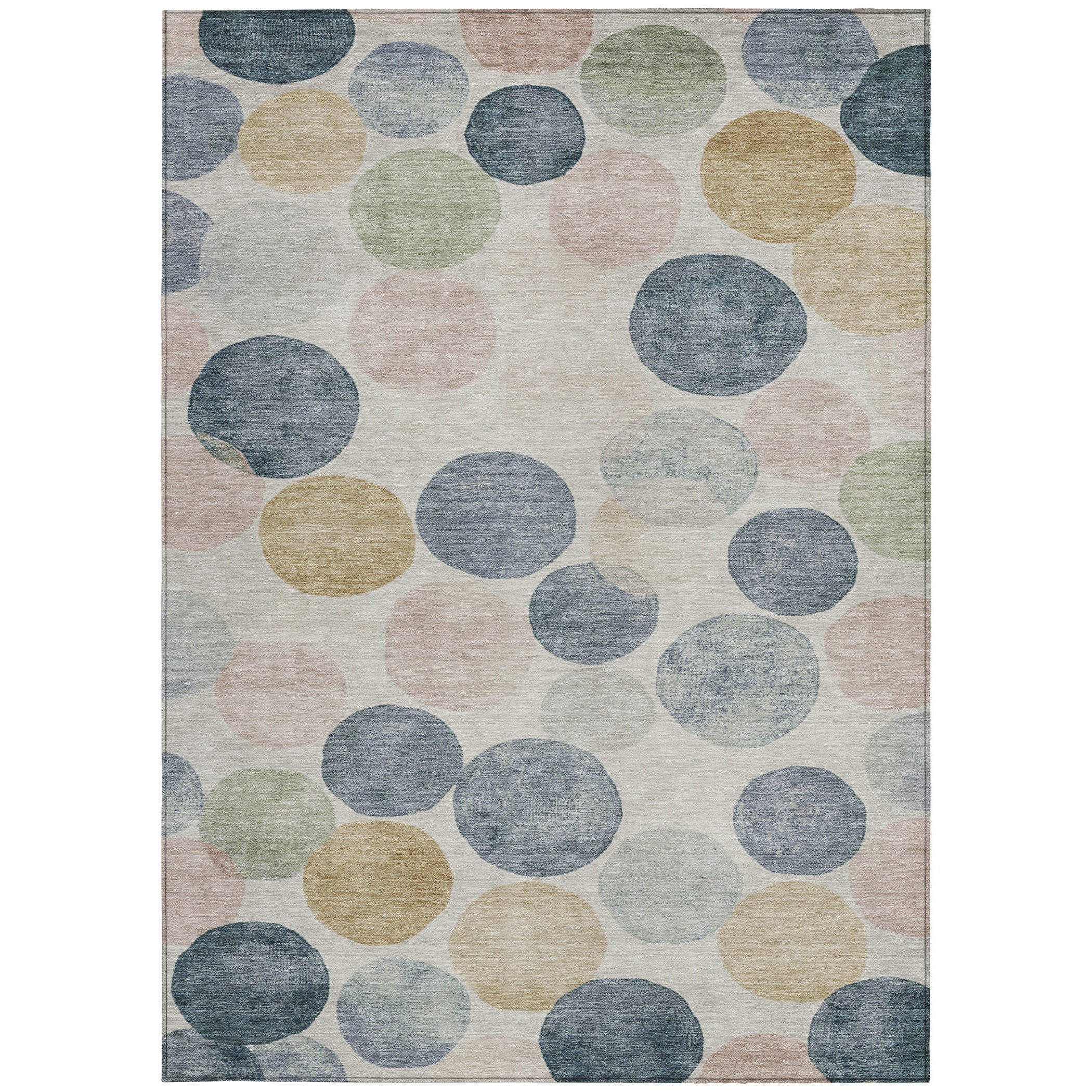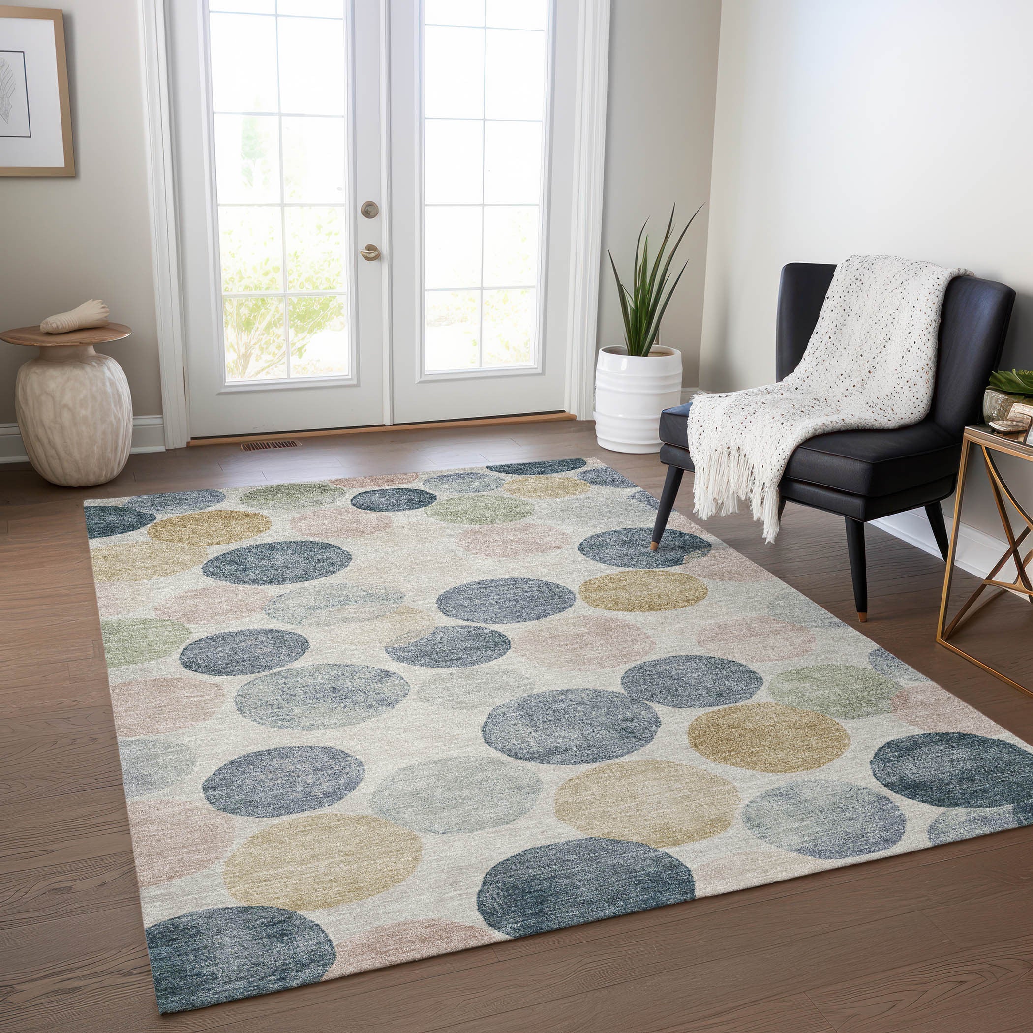 9' X 12' Beige Navy Blue And Gold Geometric Washable Indoor Outdoor Area Rug