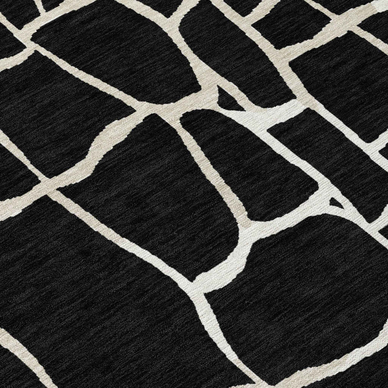 9' X 12' Black And Beige Abstract Washable Indoor Outdoor Area Rug