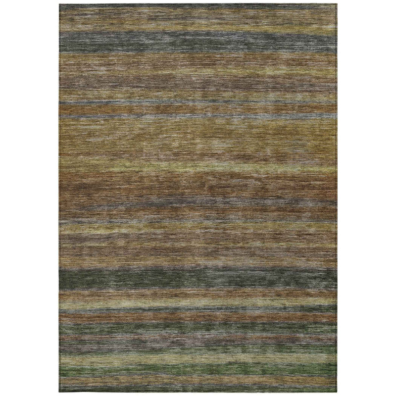 9' X 12' Brown And Gray Striped Washable Indoor Outdoor Area Rug