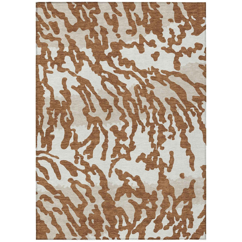 9' X 12' Brown Beige And Ivory Animal Print Washable Indoor Outdoor Area Rug