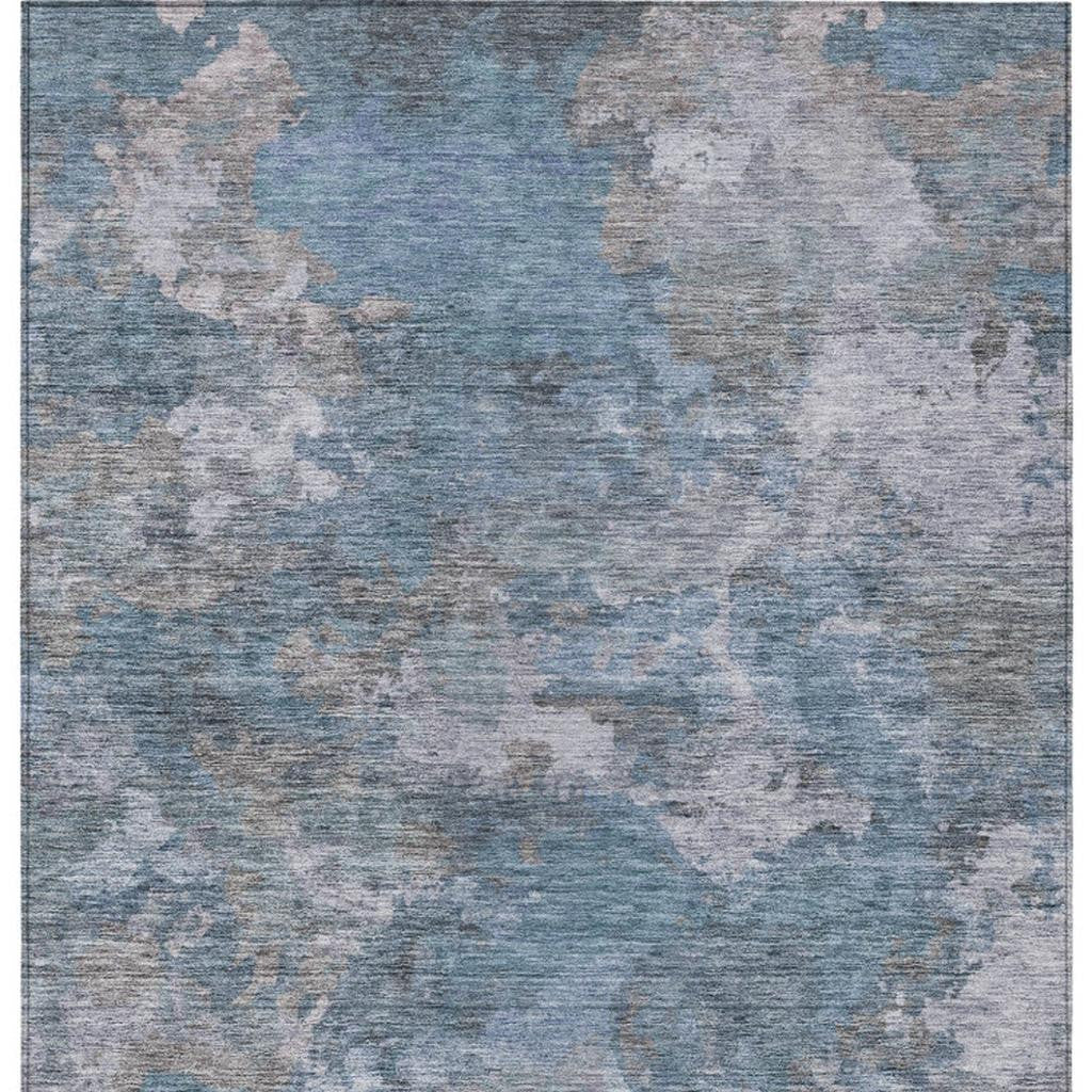 9' X 12' Denim Blue And Gray Abstract Washable Indoor Outdoor Area Rug