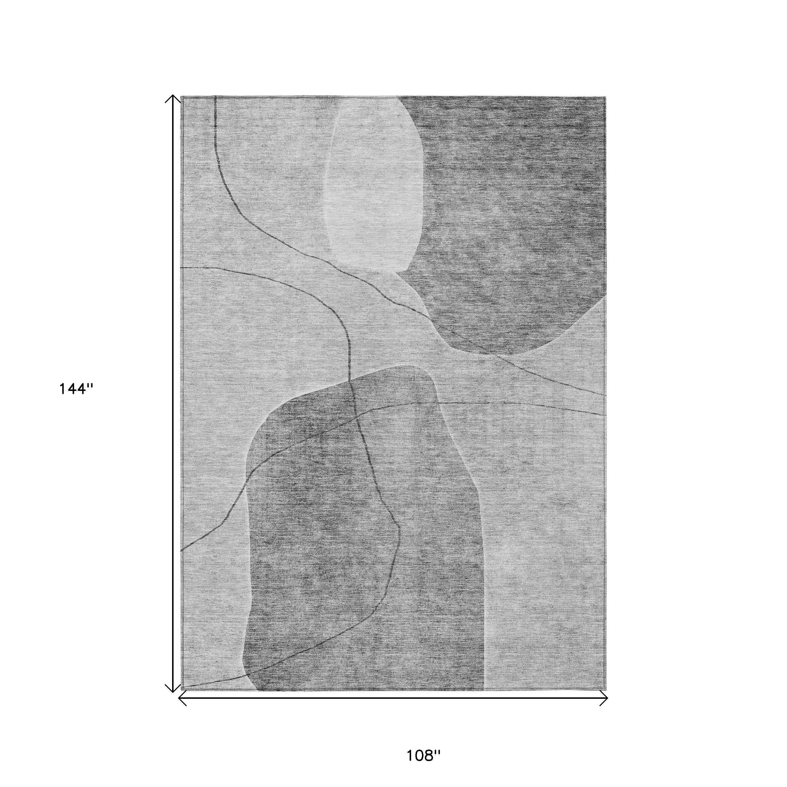 9' X 12' Gray Charcoal And Silver Abstract Washable Indoor Outdoor Area Rug