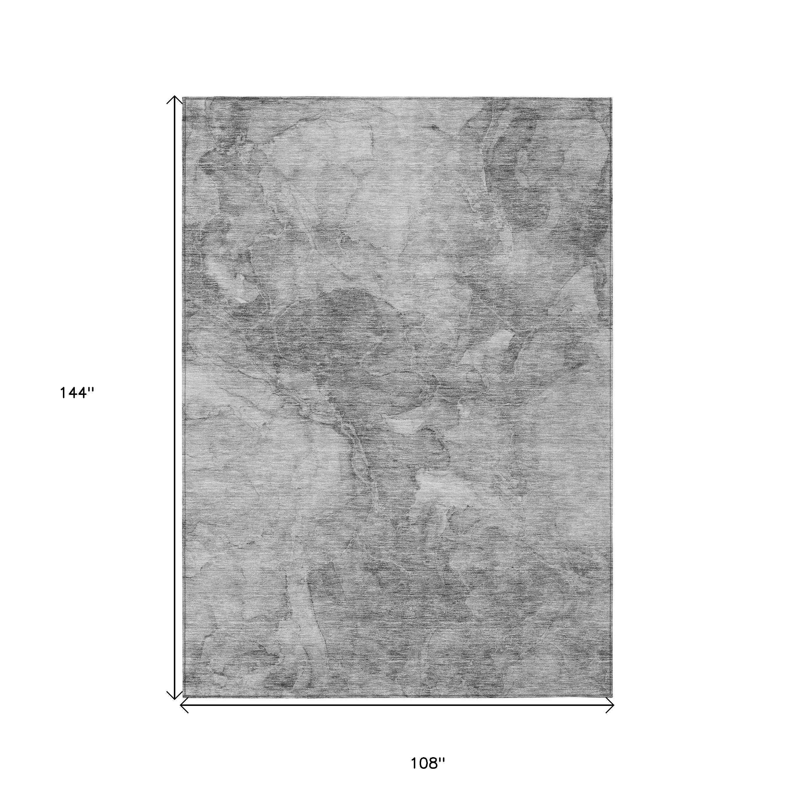 9' X 12' Gray Silver And Charcoal Nautical Washable Indoor Outdoor Area Rug