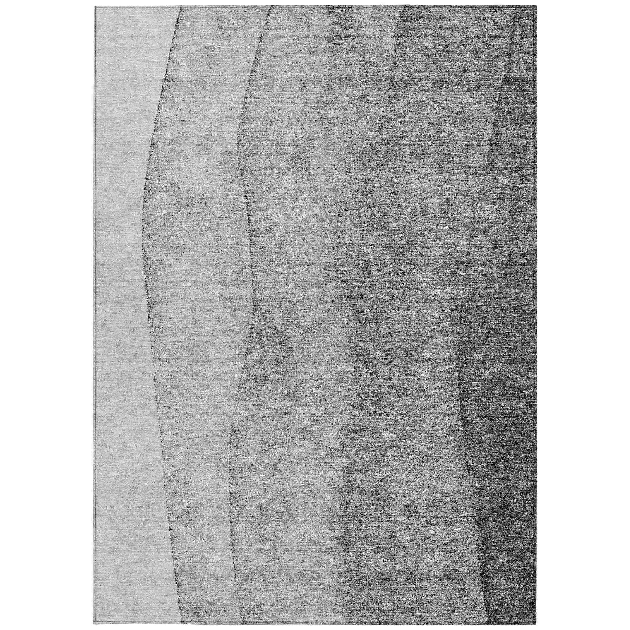 9' X 12' Gray Silver And Charcoal Ombre Washable Indoor Outdoor Area Rug