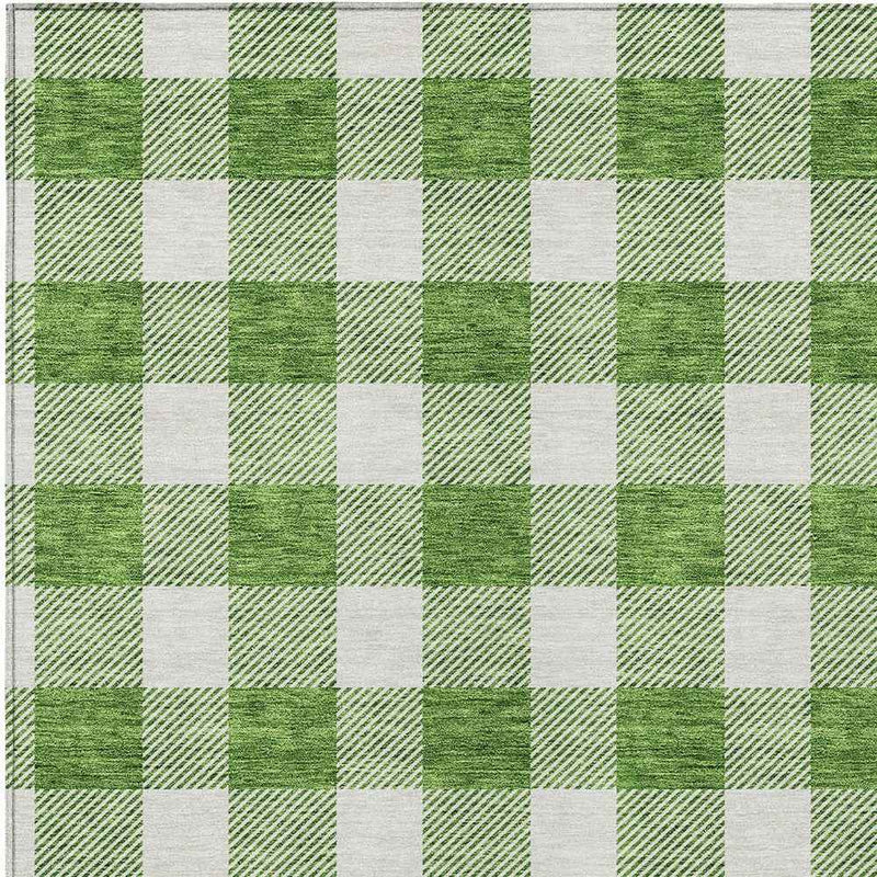 9' X 12' Green And Gray Plaid Washable Indoor Outdoor Area Rug