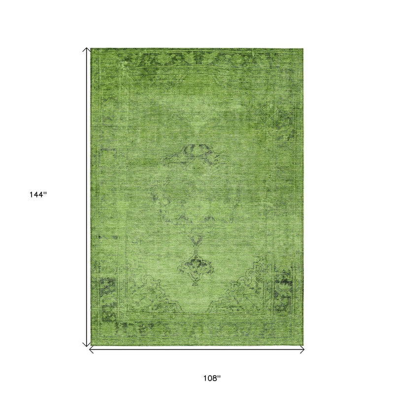 9' X 12' Green And Olive Green Oriental Washable Indoor Outdoor Area Rug