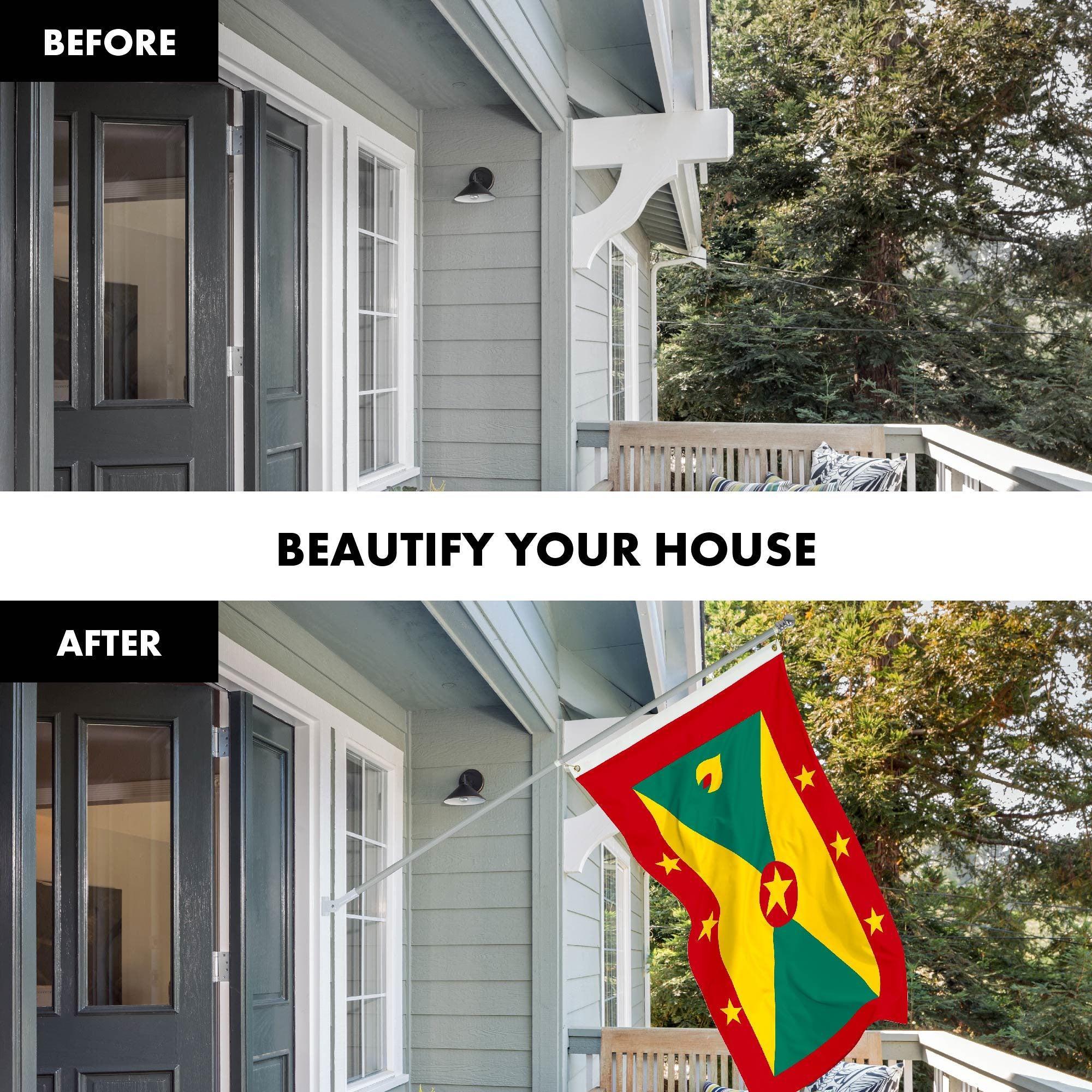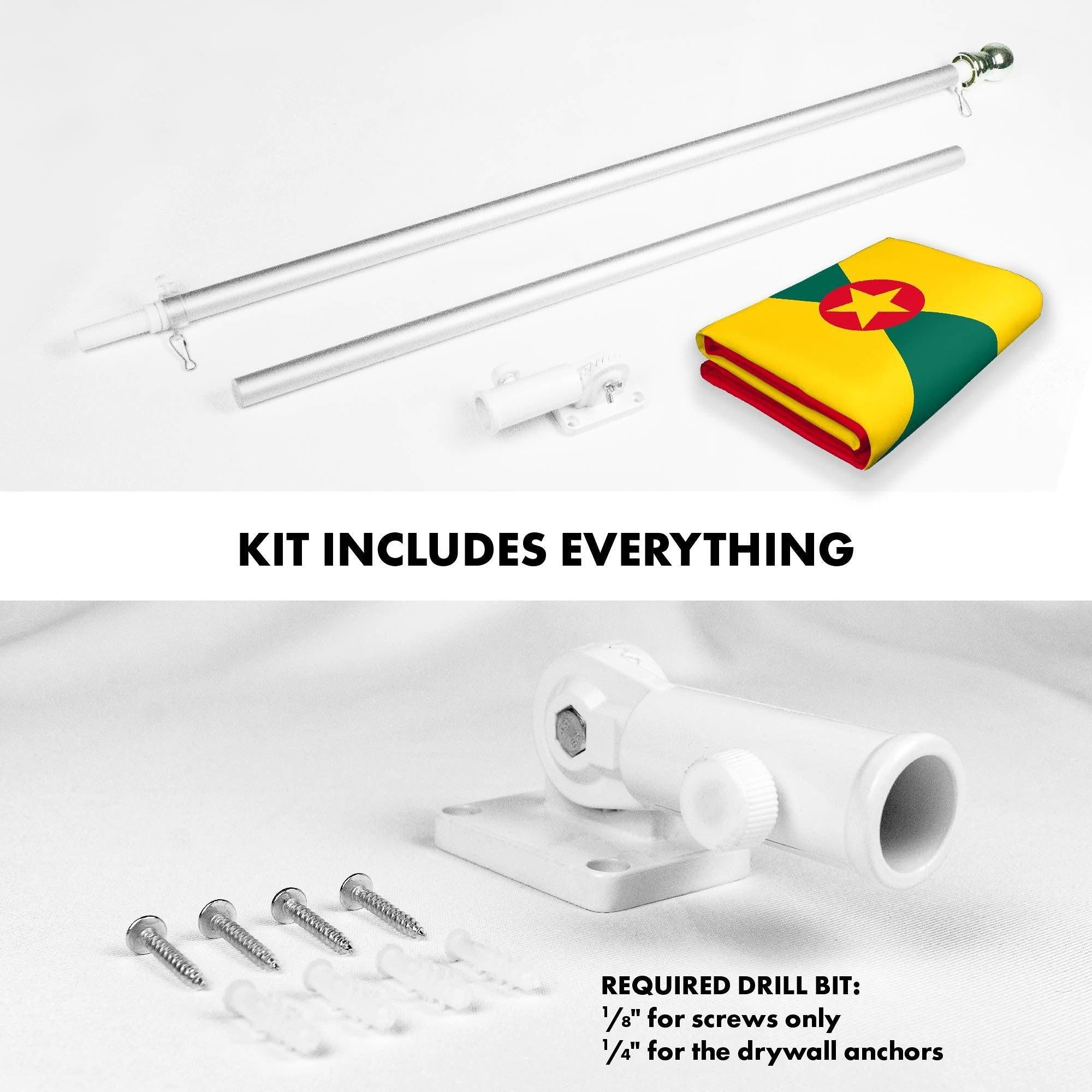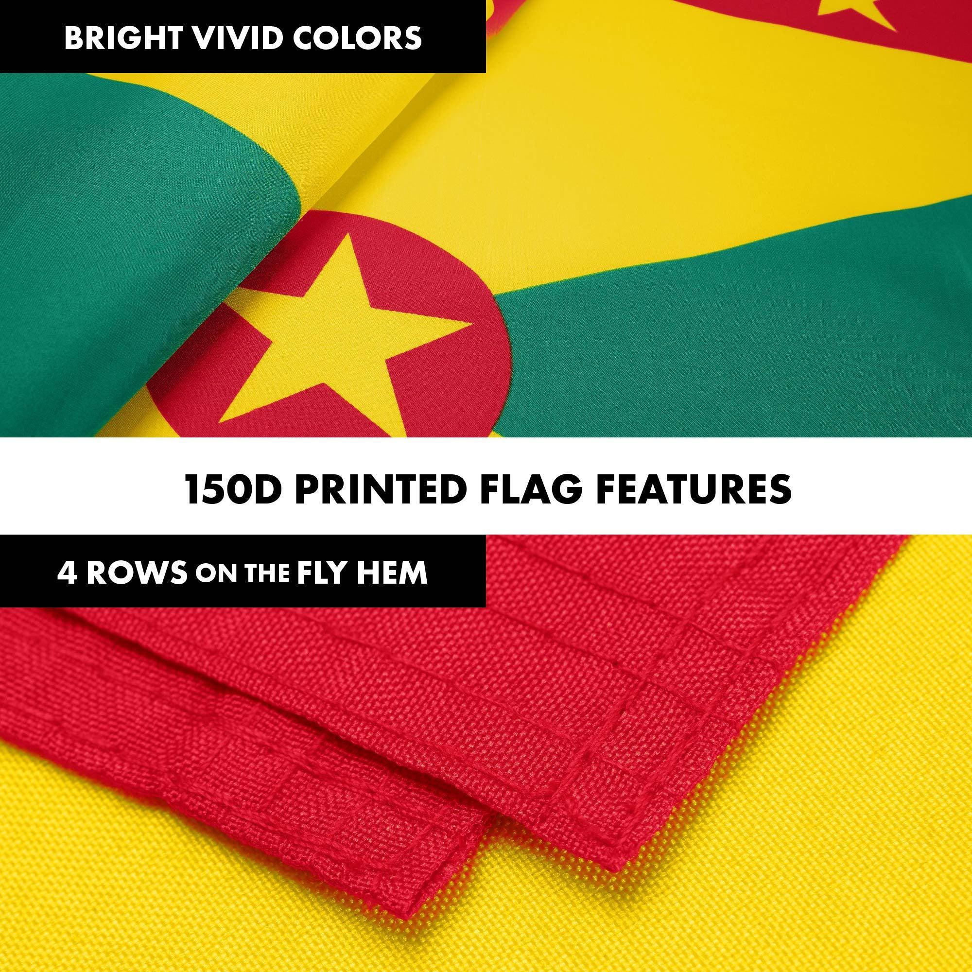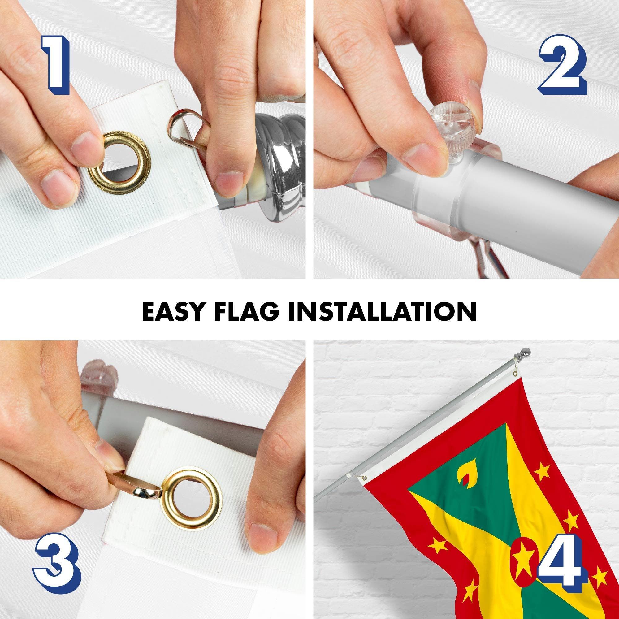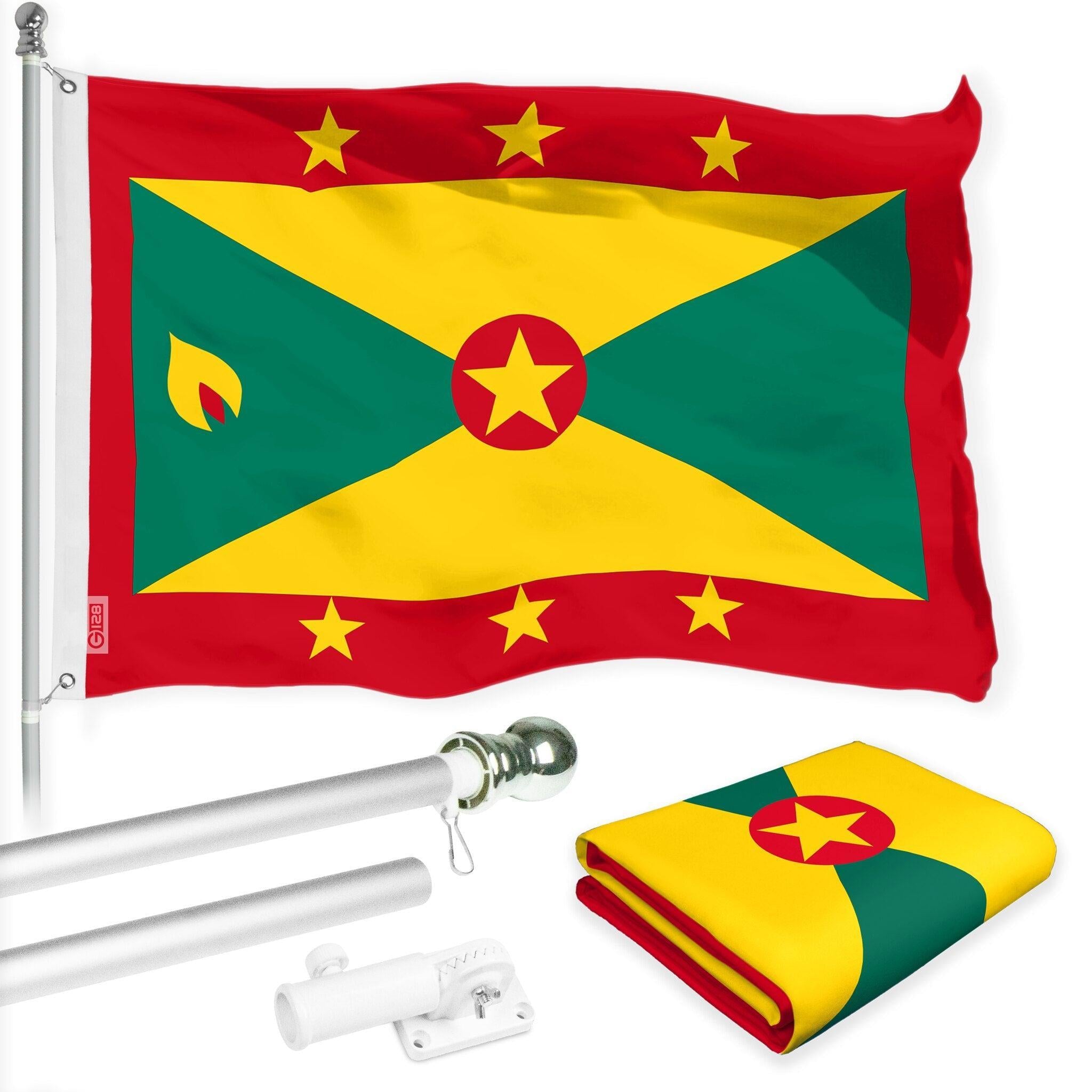 G128 Combo Pack: 6 Ft Tangle Free Aluminum Spinning Flagpole (Silver) & Grenada Grenadian Flag 3x5 Ft, LiteWeave Pro Series Printed 150D Polyester | Pole with Flag Included