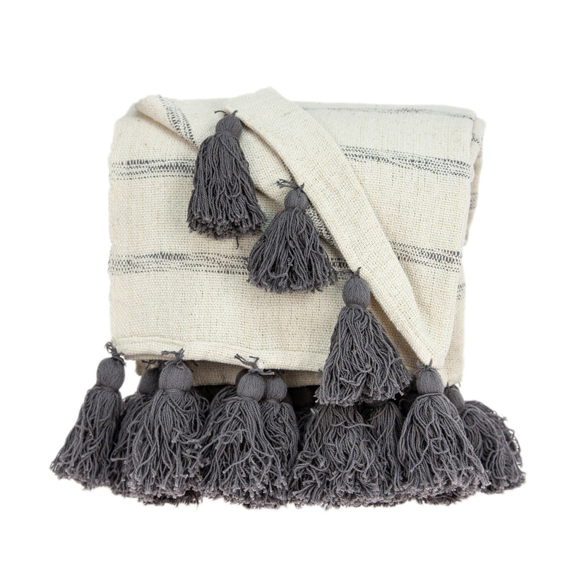 Off White Woven Cotton Solid Color Reversable Throw