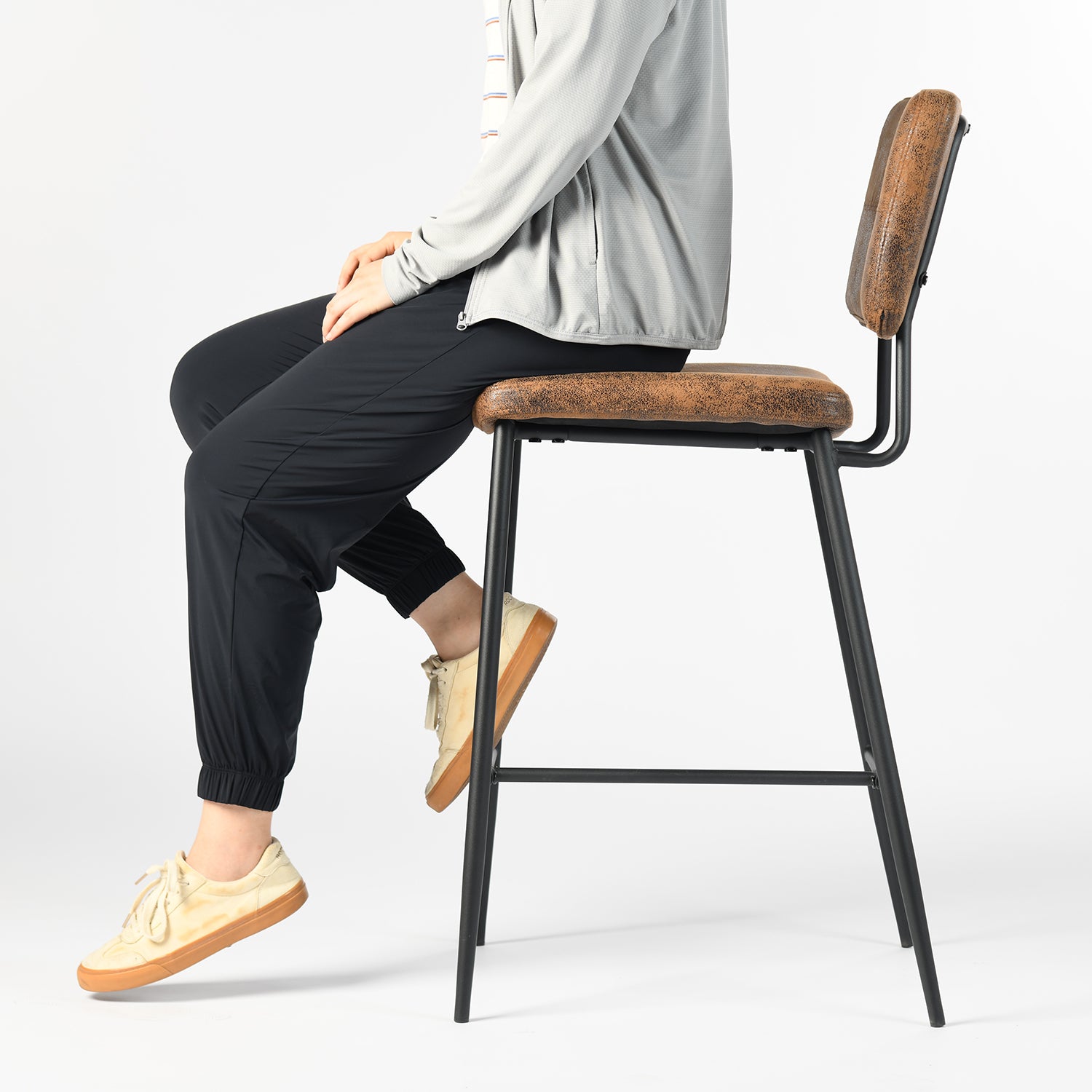 Comfortable enough to sit in for awhile, this set of two 39" vintage brown faux leather and black low back bar height bar chairs will transcend the look of your room. The vintage brown faux leather seat of this stool is a nice contrast to the high quality, black steel of the base. The square shape of the seat combines with a low back to give this chair a comfortable and fashionable look. A great seating option, this stool will bring a unique look to any room. 38.6" H x 18" W x 23.22" D