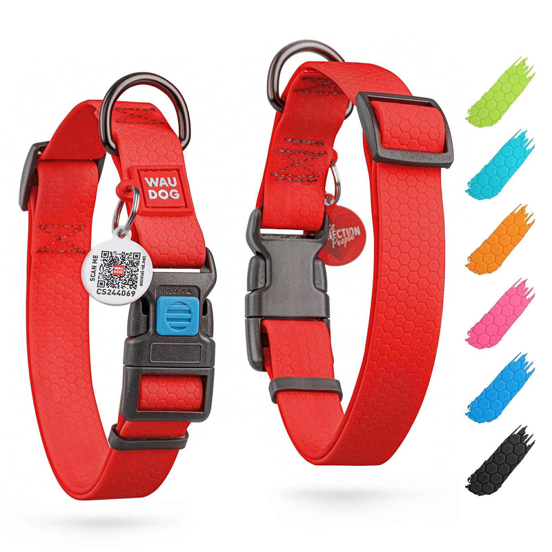 Waterproof Dog Collar   Adjustable Dog Collar for Large Dogs Small and Medium Dogs   Breakaway Dog Collar Waterproof with Plastic Buckle and QR Dog Tag   Boy & Girl Dog Collars (Red)