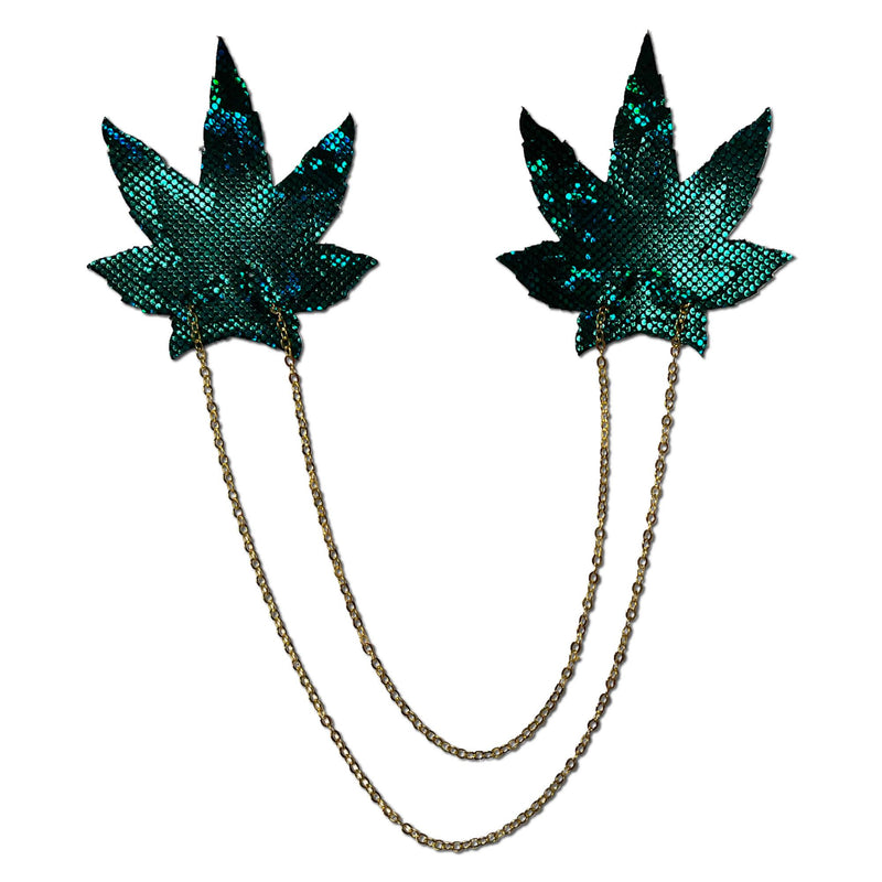 Shattered Glass Disco Ball Weed W Gold Chain Nipple Pasties