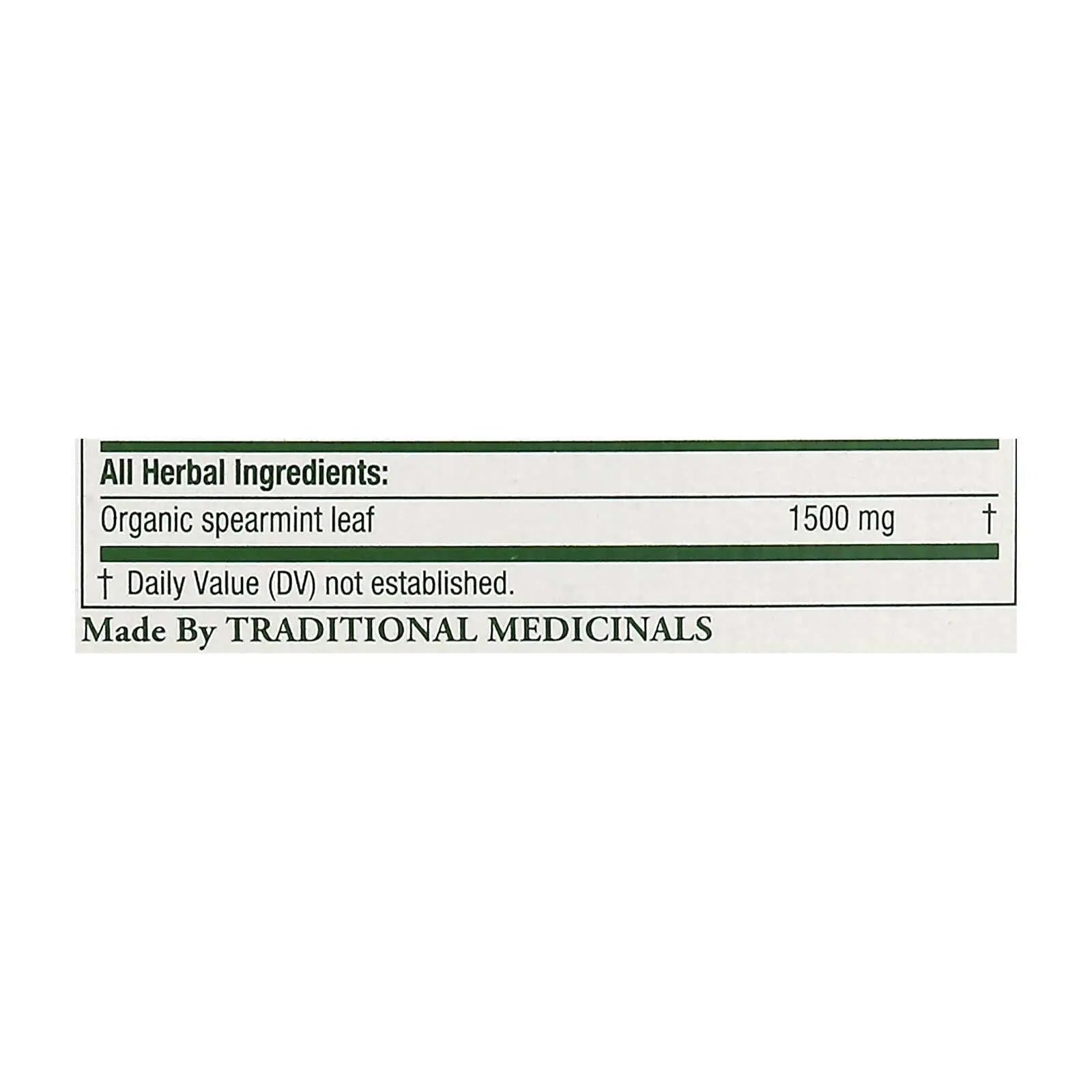 Traditional medicinals' spearmint herbal tea is made with certified usda organic and verified non-gmo ingredients. Each box contains 16 tea bags of our naturally caffeine free herbal tea. Our primary ingredient, organic spearmint leaf, is widely used as a refreshing beverage. See label for warnings and risks.