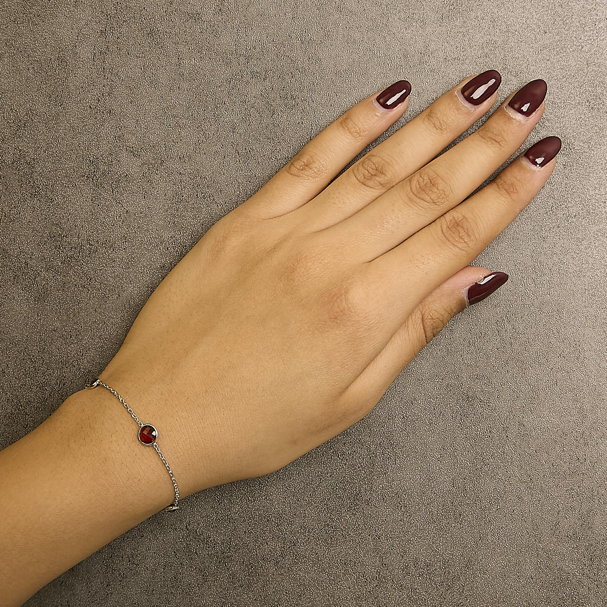 .925 Sterling Silver Bezel Set Red Garnet 5 Station Adjustable Bolo Bracelet