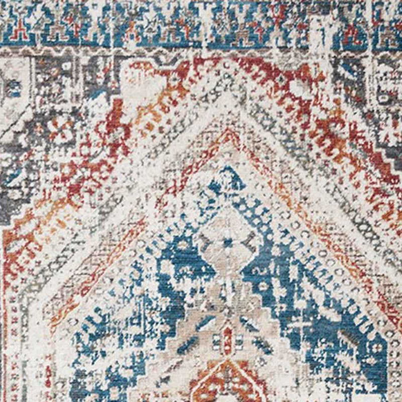 2' x 3' Teal Taupe and Rust Geometric Distressed Area Rug With Fringe