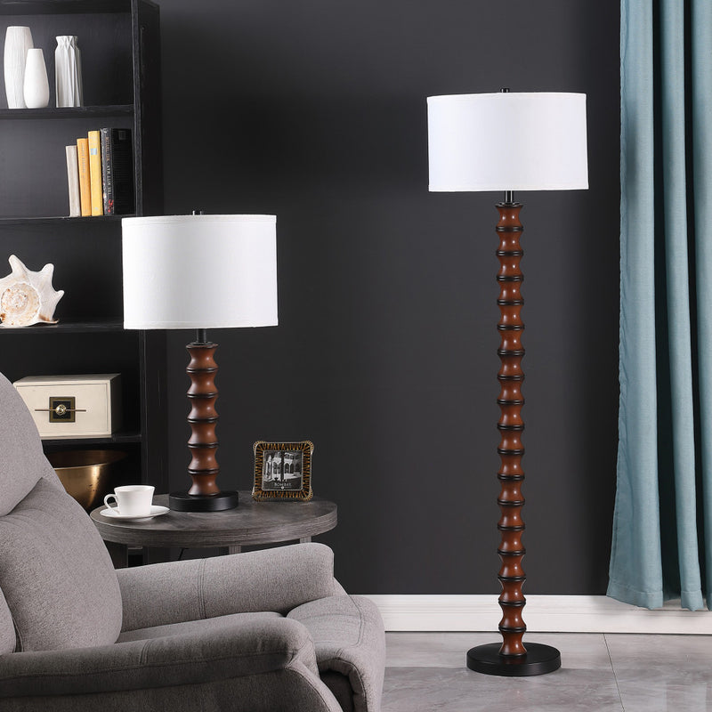 28" Dark Cherry Polyresin Indents Table Lamp With White Shade