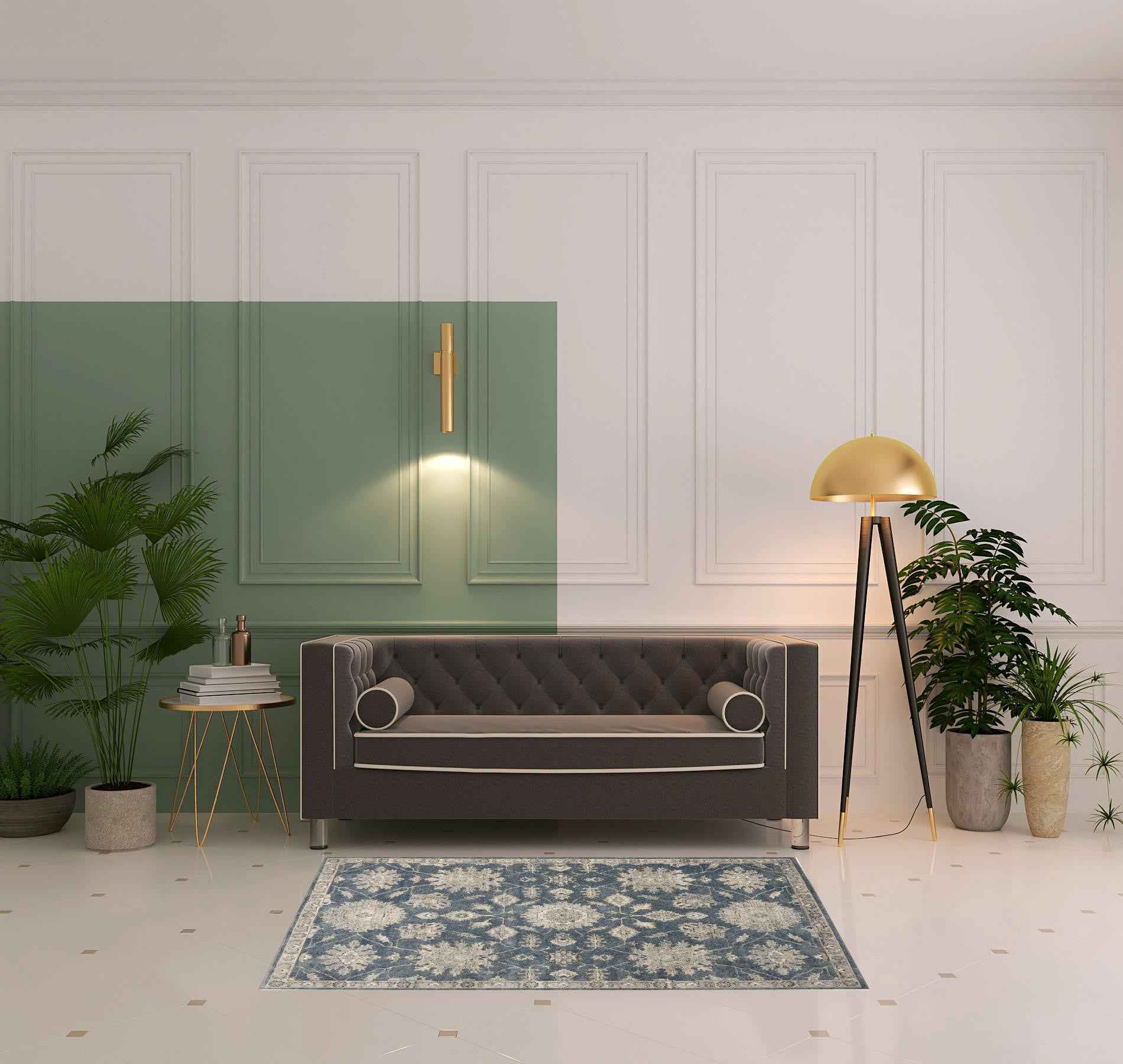 4' x 6' Blue and Beige Oriental Power Loom Non Skid Area Rug