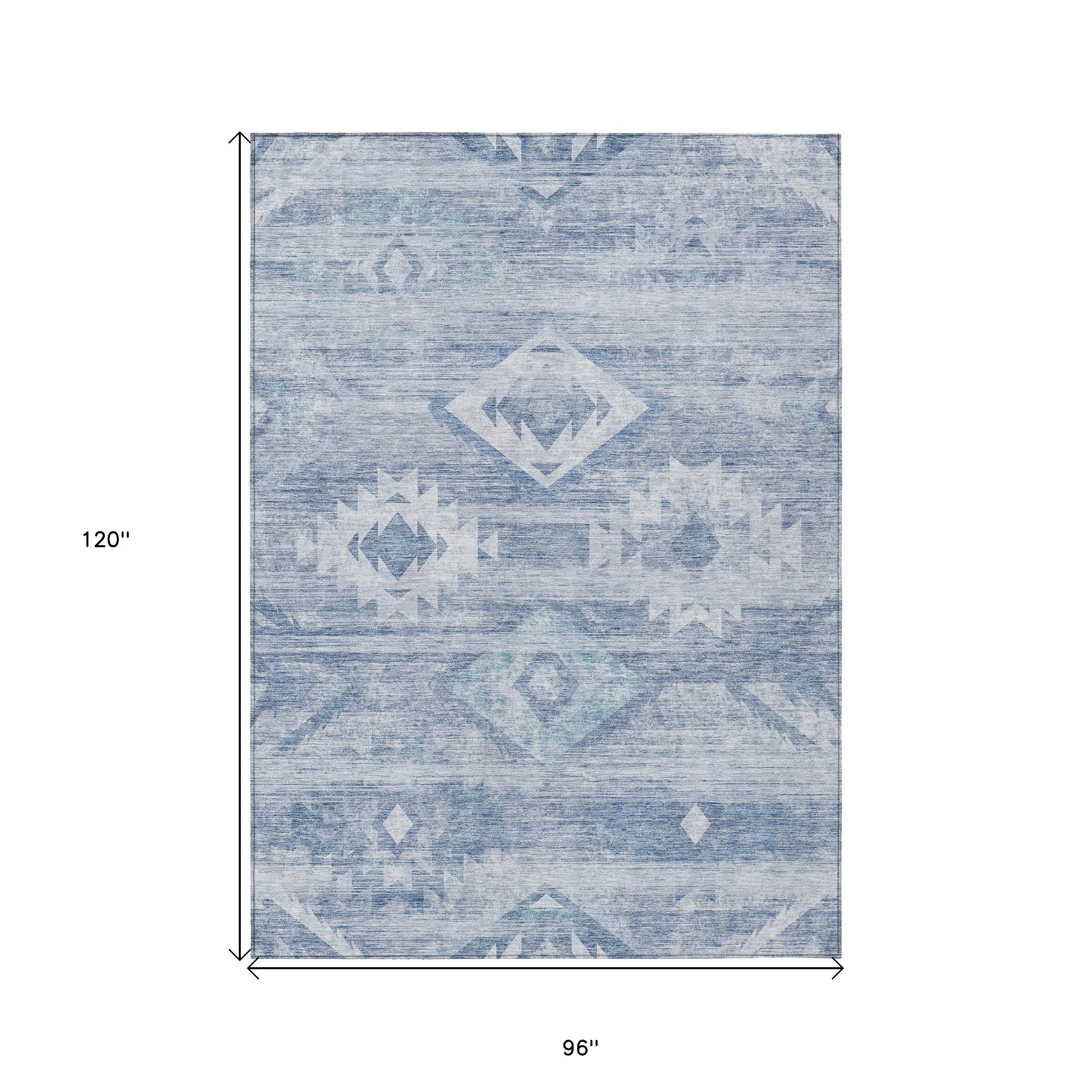 8' X 10' Denim Blue And Sky Blue Southwestern Washable Indoor Outdoor Area Rug