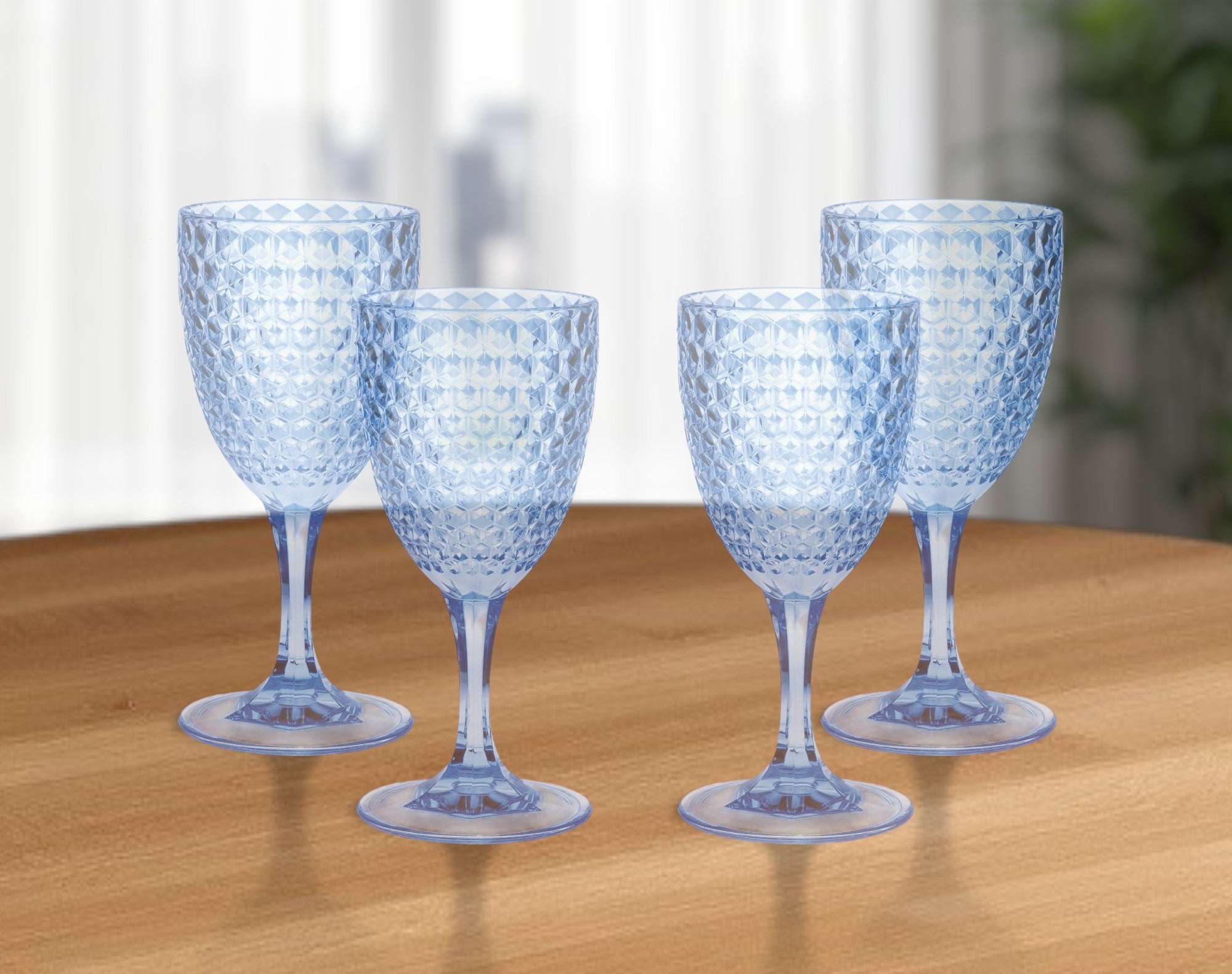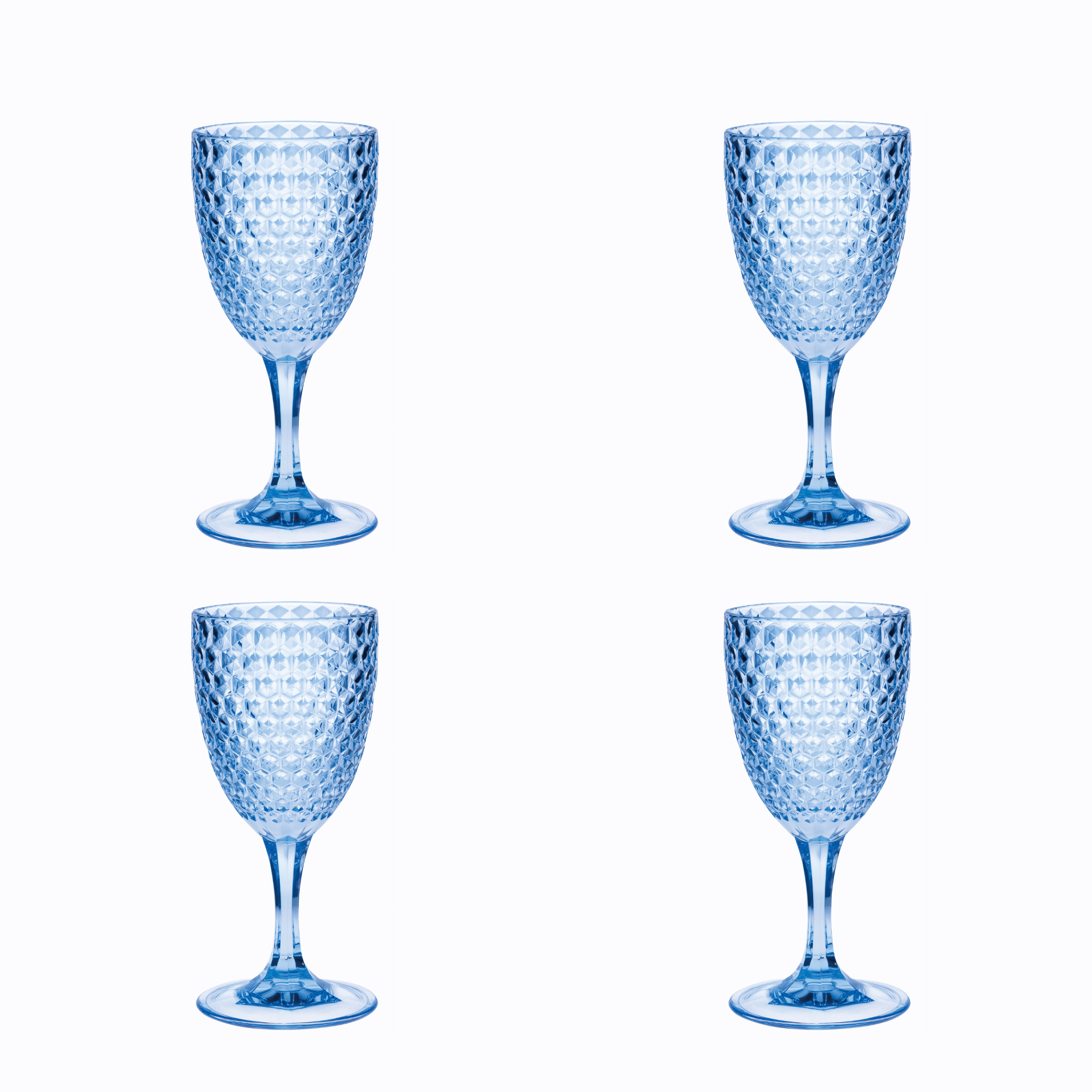 Set of Four Blue Diamond Acrylic Stemmed All Purpose Wine Glass