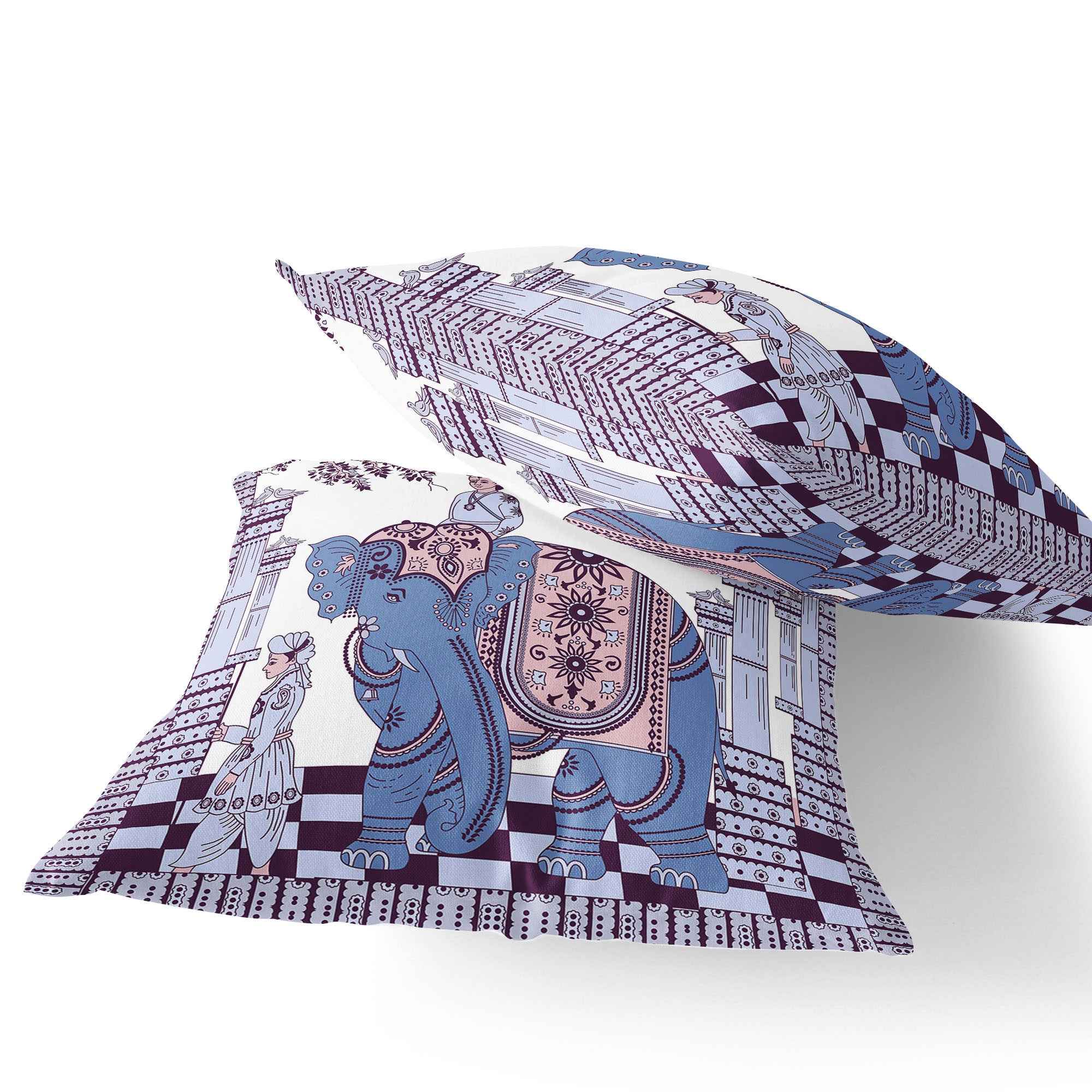 Set of Two 16" X 16" Blue and Purple Elephant Blown Seam Floral Indoor Outdoor Throw Pillow
